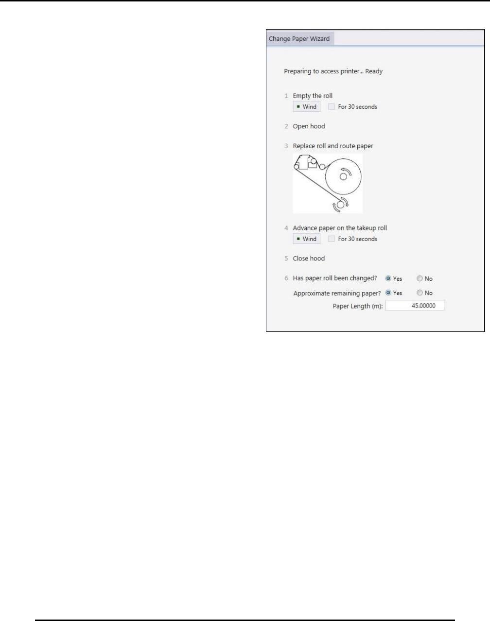 Figure 131. Advance paper on the takeup roll to ensure