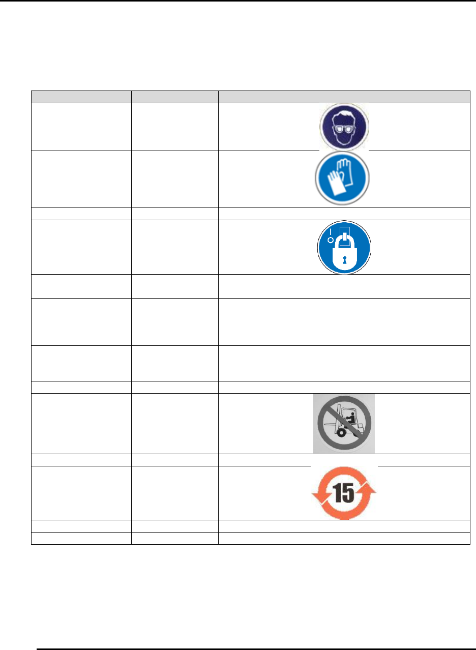 Table 8. Outside Front Labels and Placement.
