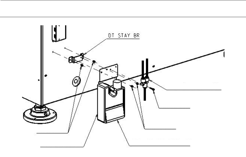 按上图所示,安装 DT STAY BR、泄水箱架、泄水箱及泄水管组件。