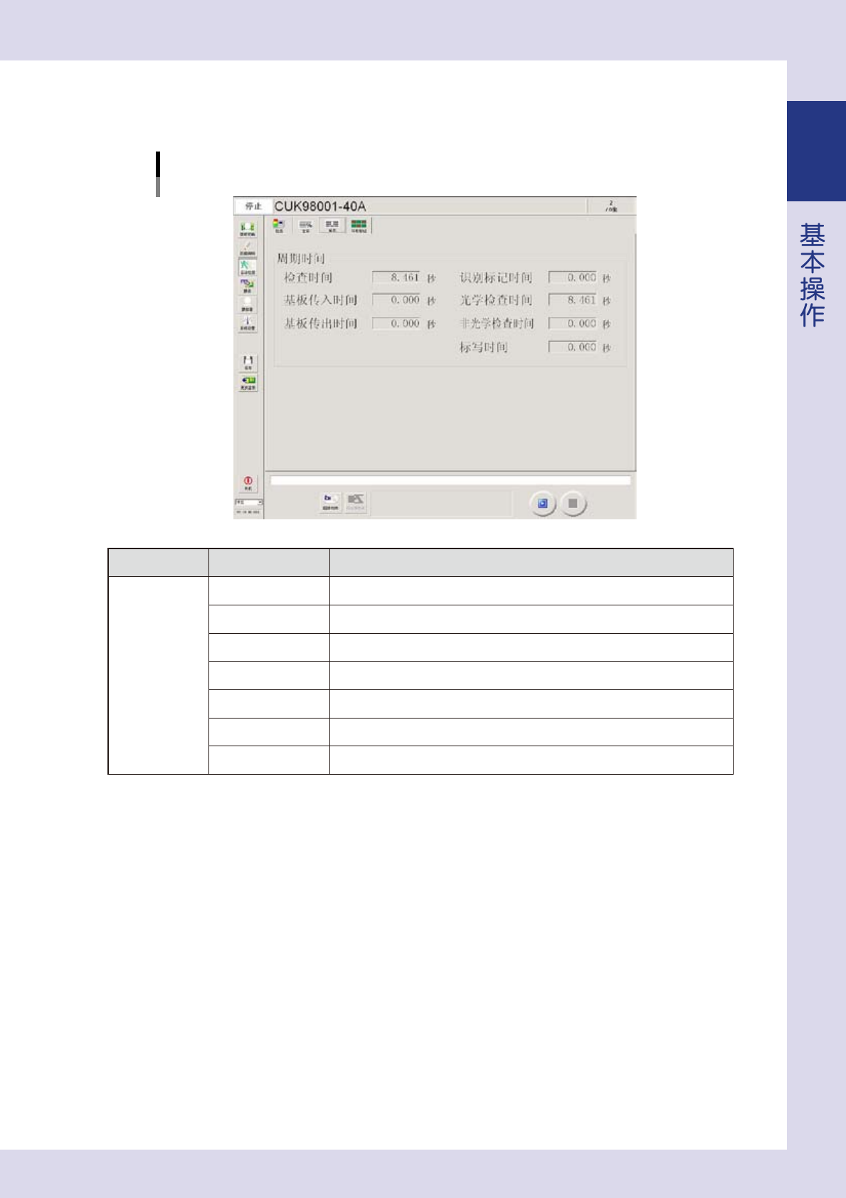 此画面,每检查完 1 张基板就显示此基板所用的周期时间。