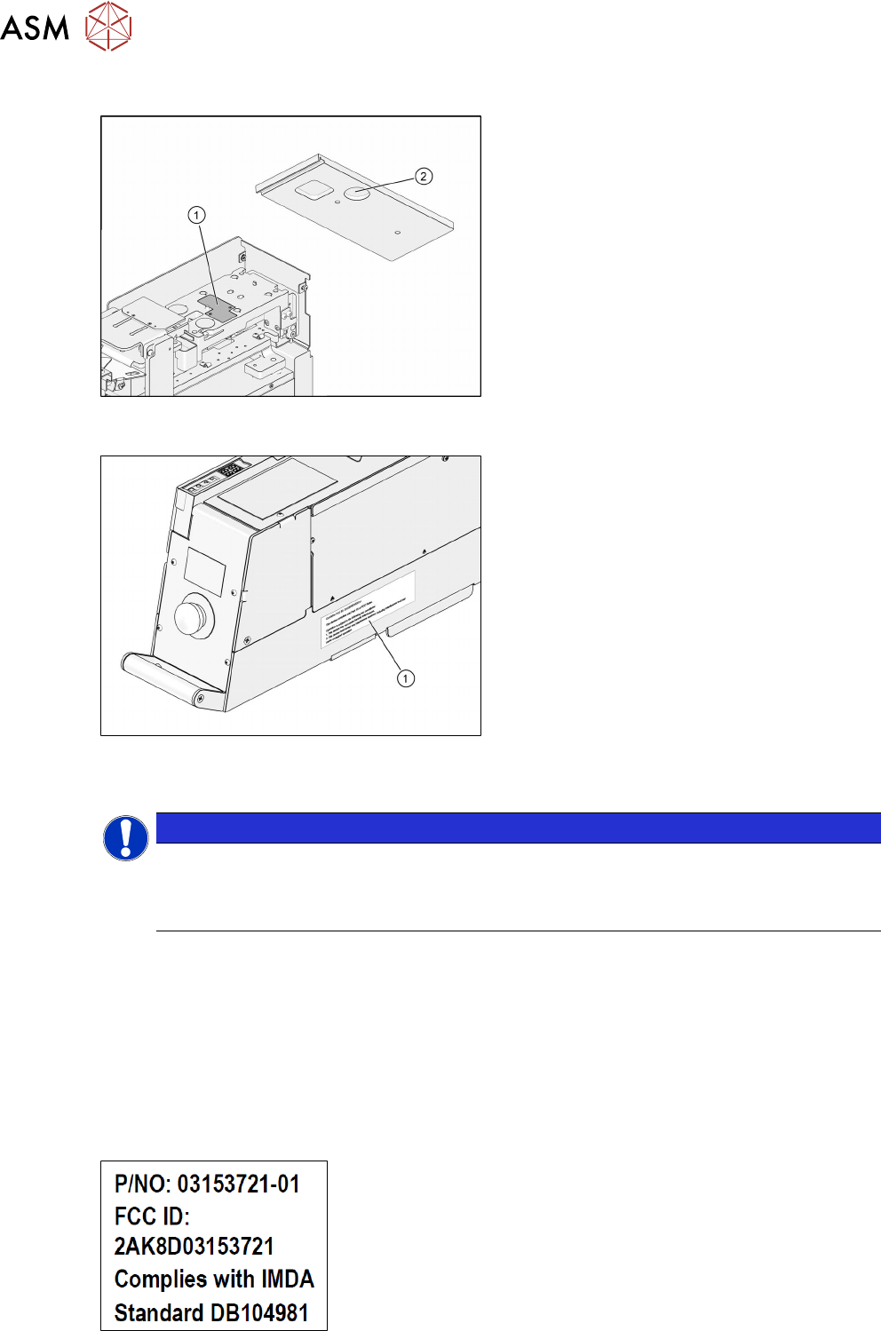 2 Betriebssicherheit 2.6 IMDA-Registrierung 18 Bedienungsanleitung SIPLACE Linear Dipping Unit 2 X 05/2020 2.5.2 RFID an der LDU 2 X 1. Das RFID-Modul (1) befindet sich auf der Oberseite der Dipp-Hubplatte. 2. Der RFID-T…