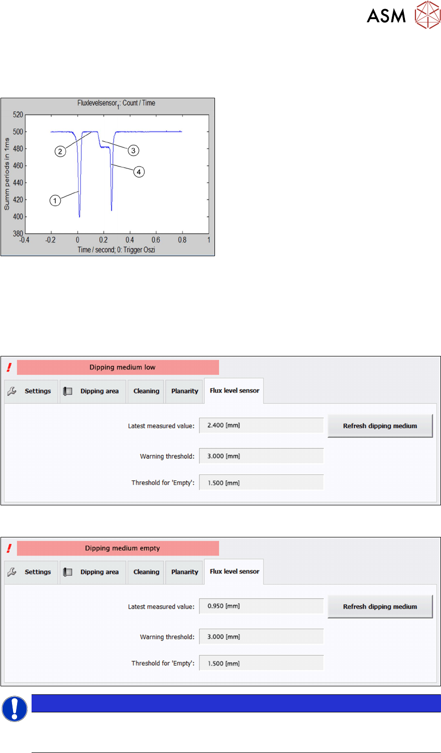 Wenn die Flussmittelmenge die Fehlerstufe erreicht, zeigt die Stationssoftware eine entspre-