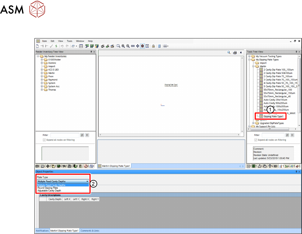 ► Wählen Sie in Tools - Strukturansicht die Dipping-Platte, die definiert werden soll (1).