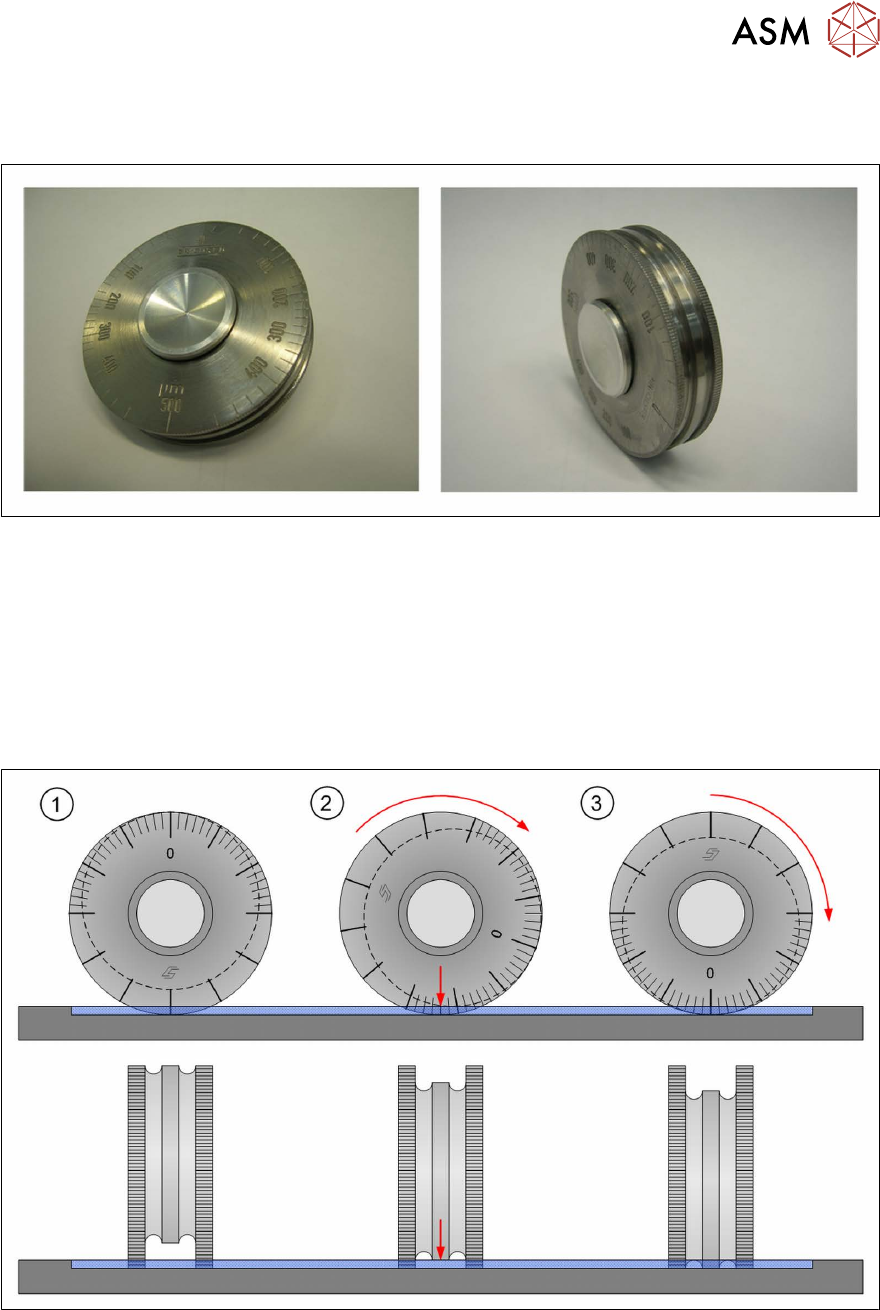 Das Messinstrument wird durch die Flussmittelschicht gerollt. Hierbei bewegen sich die beiden