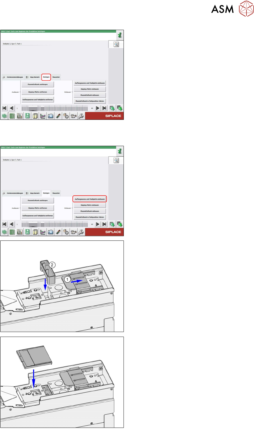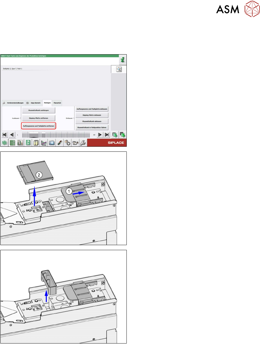 Voraussetzungen: Die Parkplatte und die Auffangwanne sind montiert. Die Dipping-Platte ist ent-
