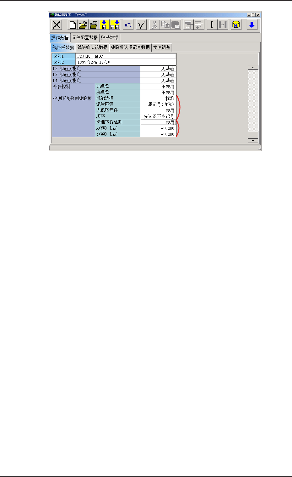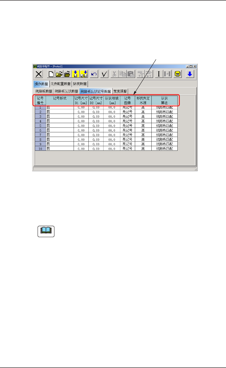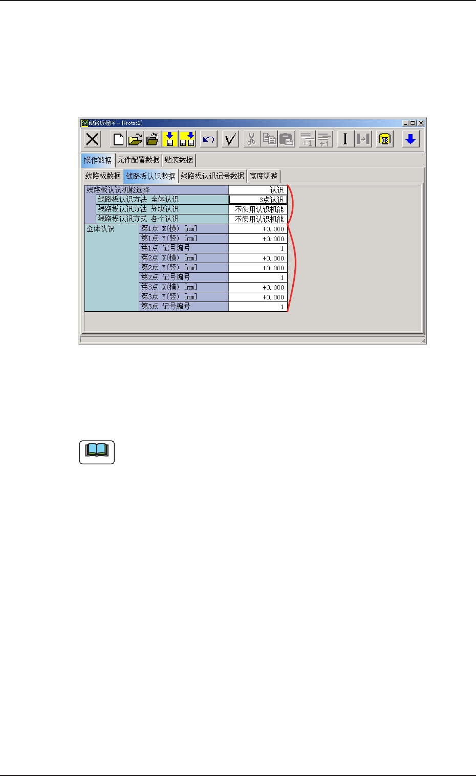 单击 “ 操作数据 ” 选项卡中的[ 线路板认识记号数据]Tab,显示如