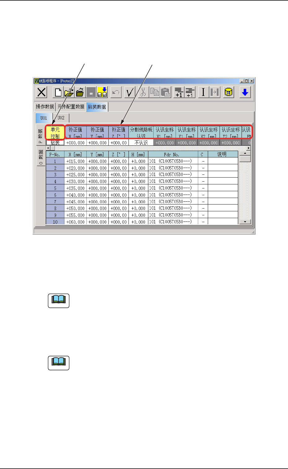 单击 “ 贴装数据 ” 选项卡中[0- 数据]Tab,显示如下选项卡。