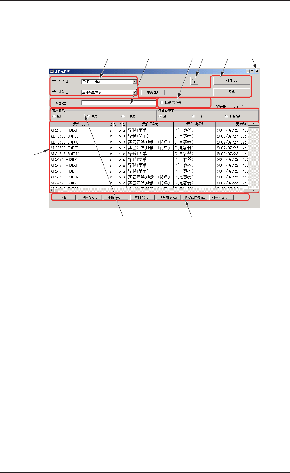 *7 中指定元件 ID 的 “ 元件库 ” 编辑界面。
