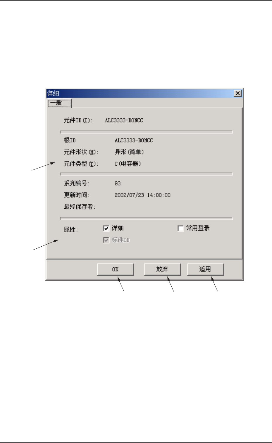 (1) 选择要显示详细的元件 ID。