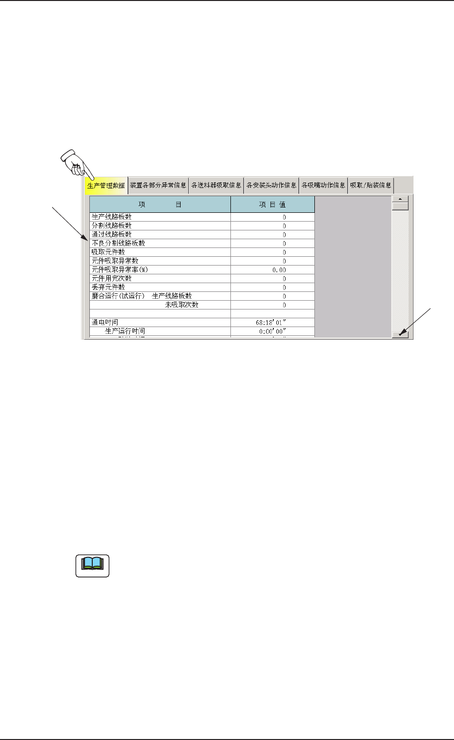 (3) (3) (3) (3) (3) 通过线路板数 通过线路板数 通过线路板数 通过线路板数 通过线路板数 通过运行下的线路板通过数。 在 XY 工作台上的线路板移向排出传送带时进行计数。 (4) (4) (4) (4) (4) 不良分割线路板数 不良分割线路板数 不良分割线路板数 不良分割线路板数 不良分割线路板数 使用检测不良分割线路板机能时的不良线路板数。 (5) (5) (5) (5) (5) 吸取元件数 吸取元件数 吸取元件…