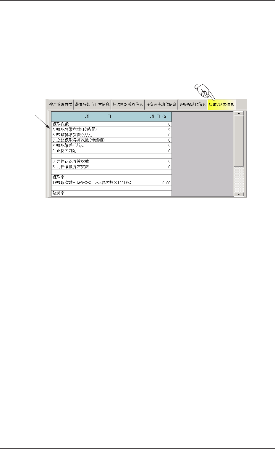 点击 “ 装置生产情况 ” 界面的[ 吸取 / 贴装信息]Tab,显示如下选