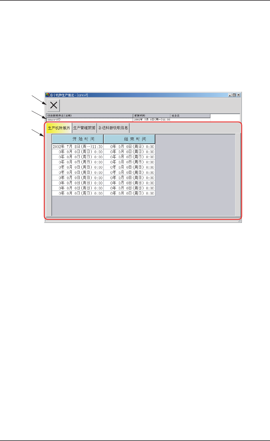 显示装置生产情况的程序名( 说明) 、更新时间、设备名。