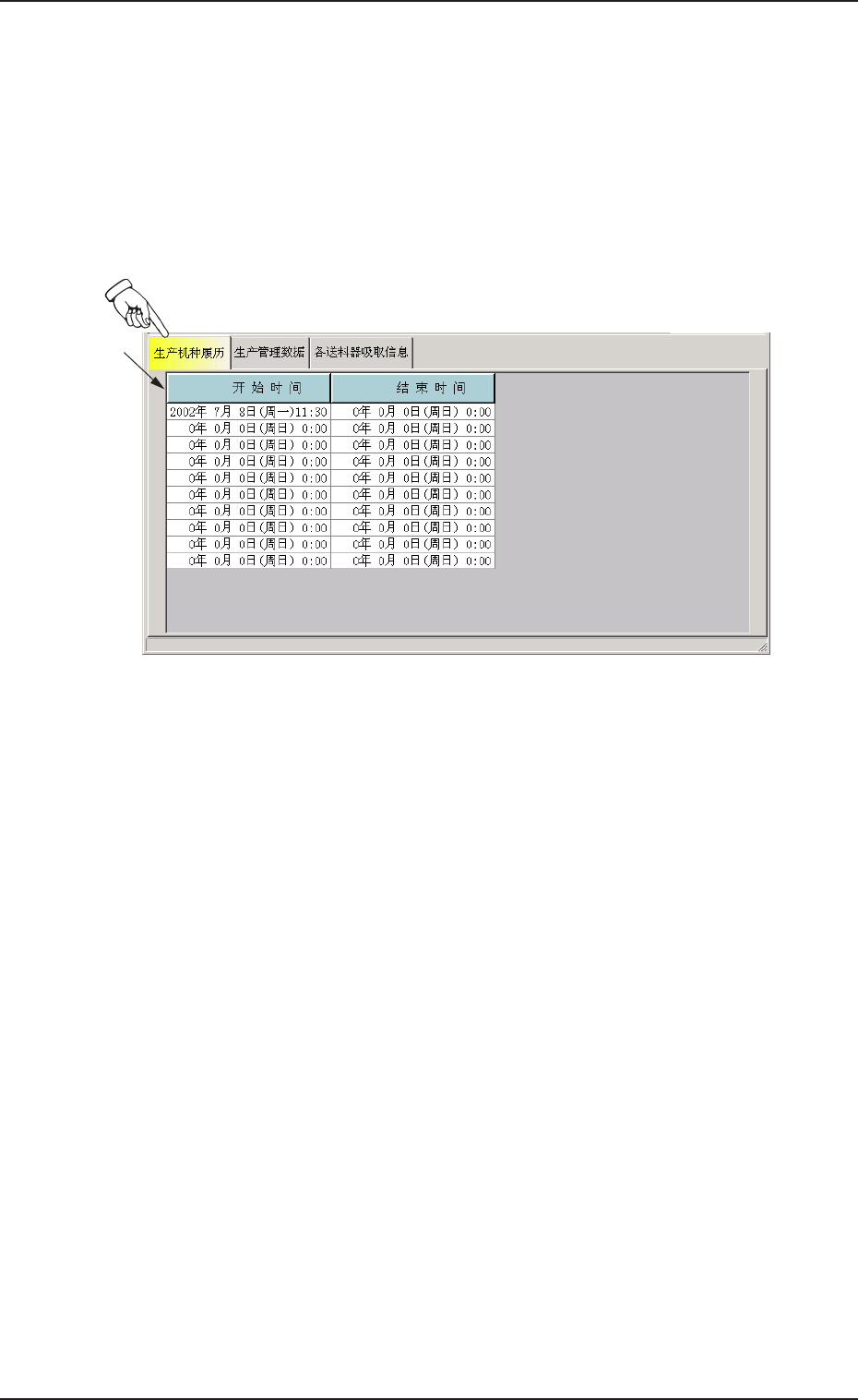 显示生产机种的开始时间及结束时间的履历。