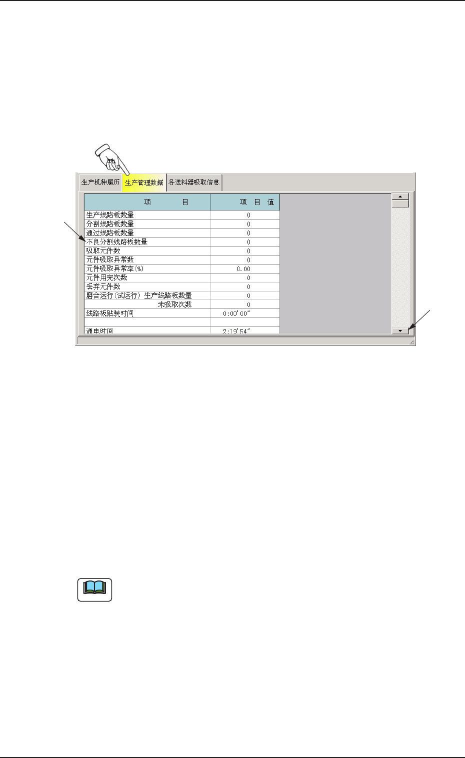 4.2 4.2 4.2 4.2 4.2 “ 生产管理数据 生产管理数据 生产管理数据 生产管理数据 生产管理数据 ” Tab Tab Tab Tab Tab 一览显示生产机种的管理数据。 • • • • • 页面显示 页面显示 页面显示 页面显示 页面显示 在 “ 各个机种生产情况 ” 界面中,单击 [ 生产管理数据 ]Tab ,显示 如下选项卡。 Fig.3D 1 7 Fig.3D 1 7 Fig.3D 1 7 Fig.3D 1 7 …