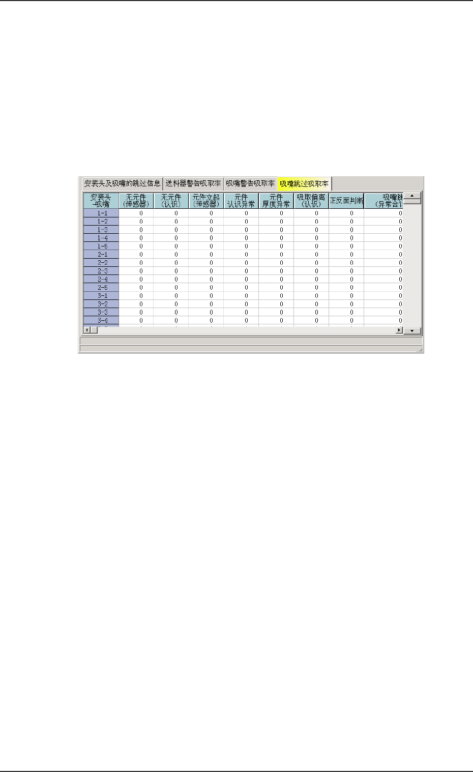 文本框显示各吸嘴发生的吸取异常次数对吸取元件数的百