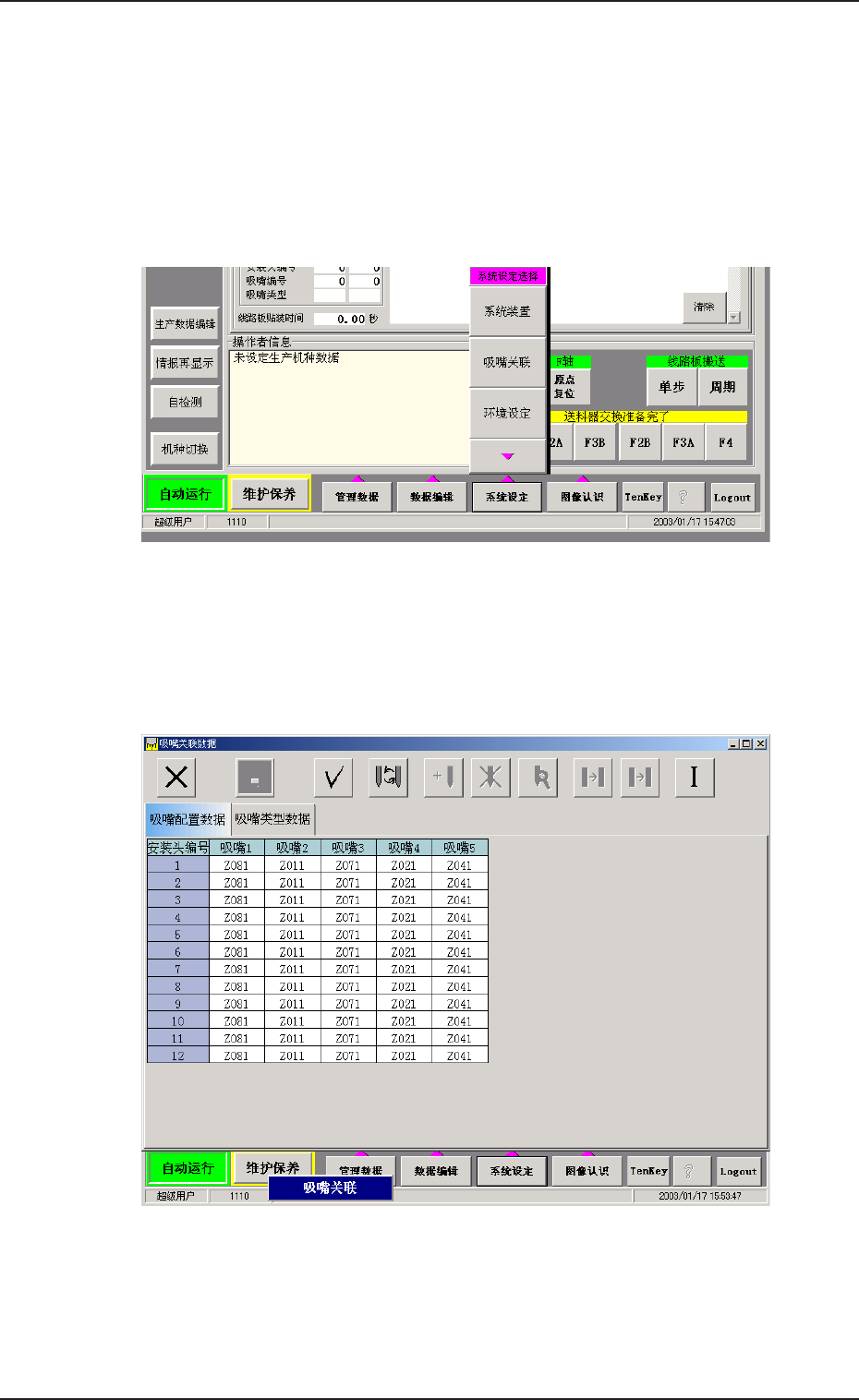 显示 “ 吸嘴关联数据 ” 界面。