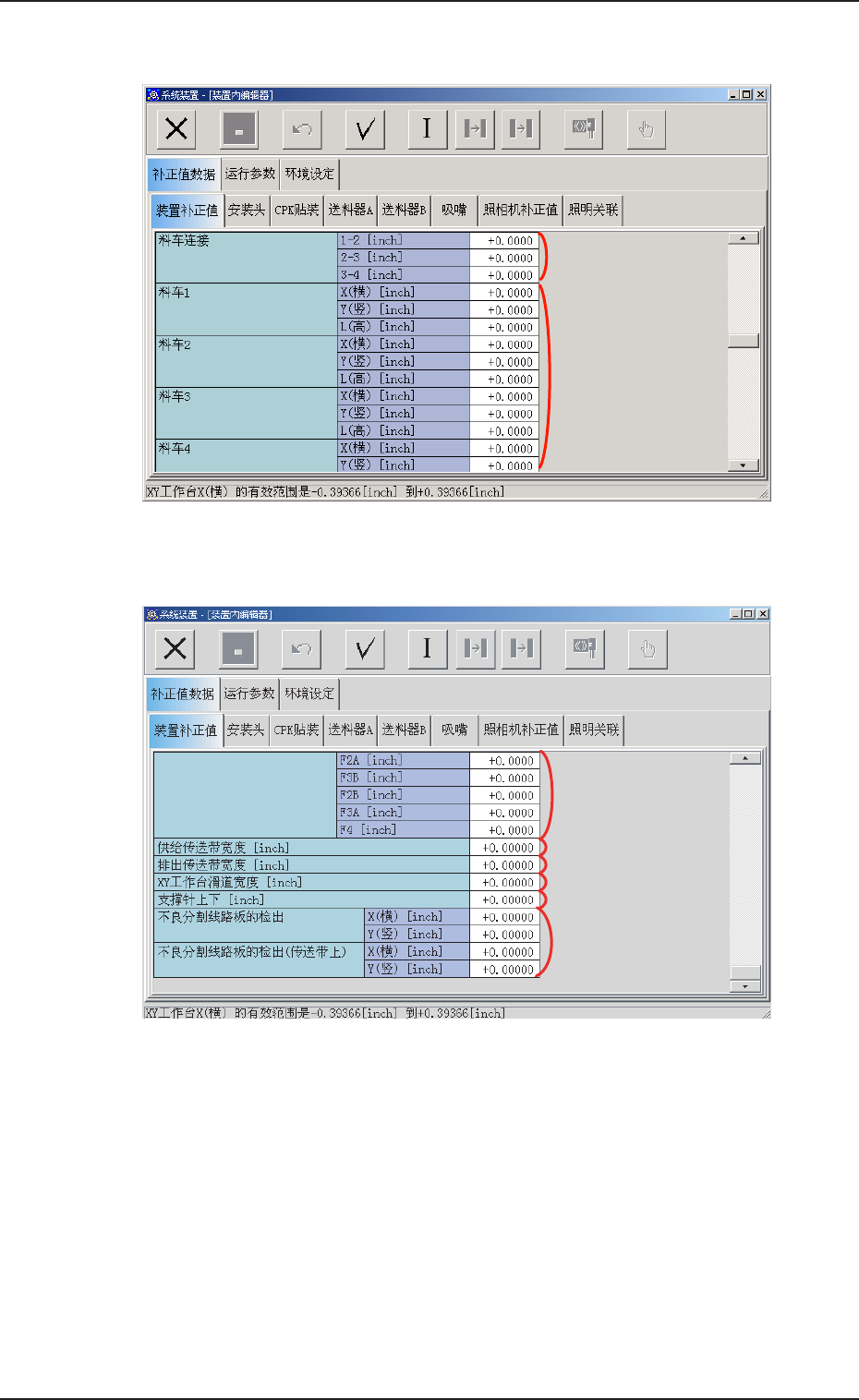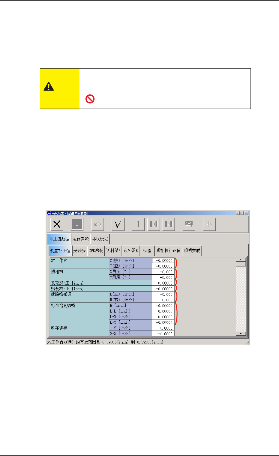 3.2 3.2 3.2 3.2 3.2 “ 补正值数据 补正值数据 补正值数据 补正值数据 补正值数据 ” Tab Tab Tab Tab Tab 由有关设备运行的各单元部的位置调整用补正值数据,有关设备 精度的照相机系、安装头系、吸嘴系的补正值数据群组成。 设备出厂时已调整、 设备出厂时已调整、 设备出厂时已调整、 设备出厂时已调整、 设备出厂时已调整、 设定好, 设定好, 设定好, 设定好, 设定好, 因此, 因此, 因此, 因此,…