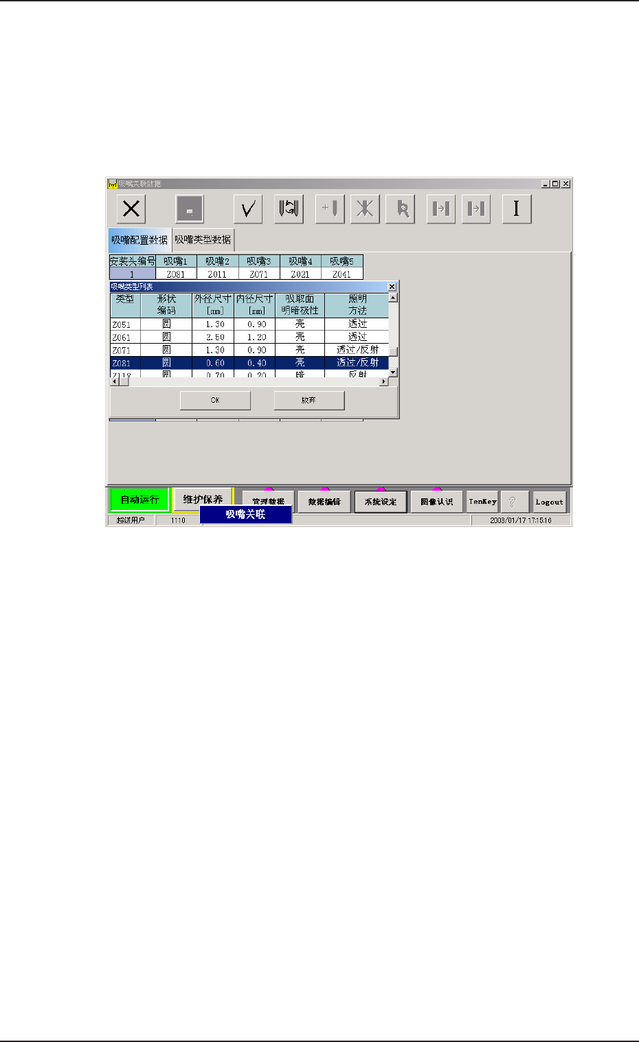 (2) 选择要配置的吸嘴,单击[OK]按钮,切换吸嘴类型。