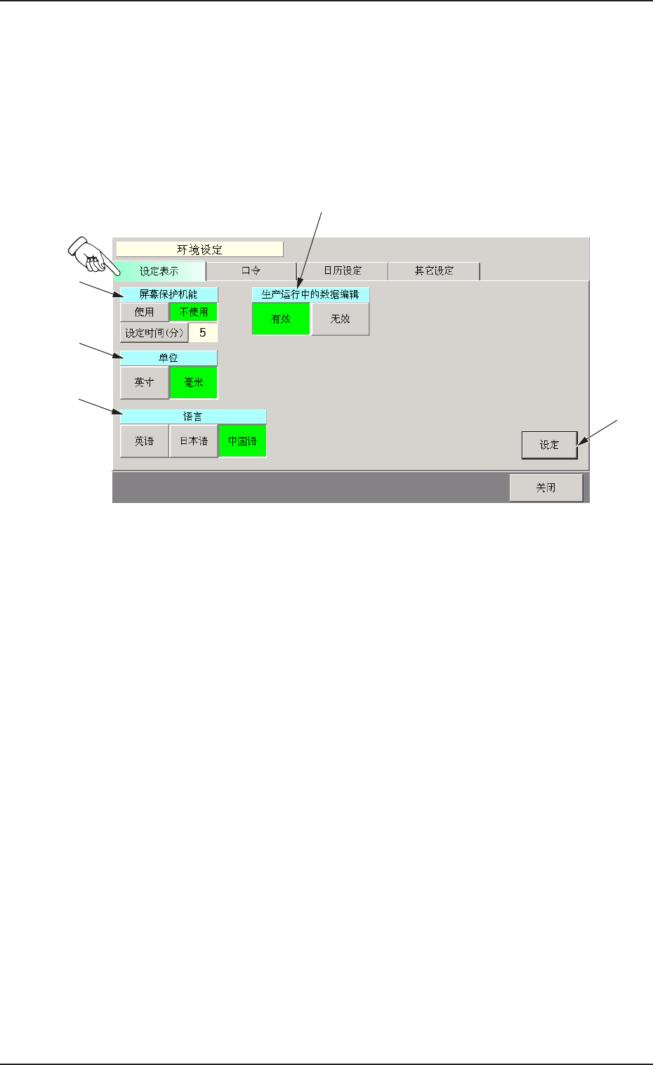 显示 “ 环境设定 ” 界面时,单击[ 设定表示]Tab,显示以下选项