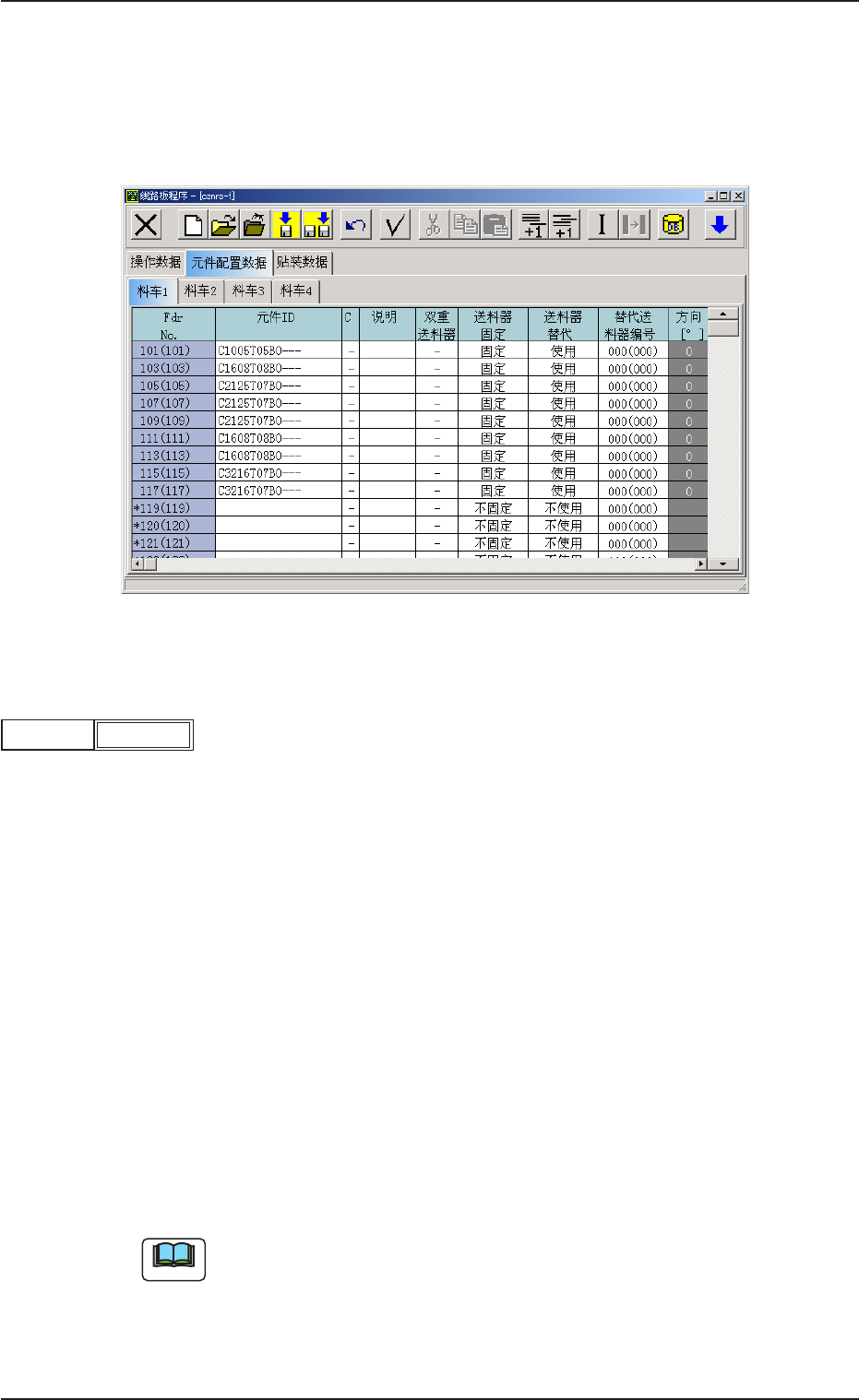 显示元件配置数据的料车号。