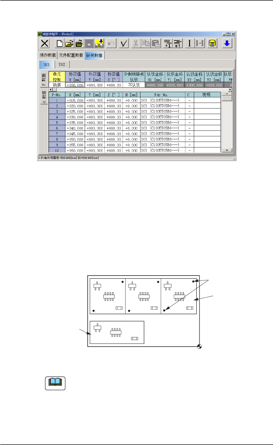 设定贴装数据(P)全体贴装坐标 “X,Y” 和分割线路板认识坐标的补