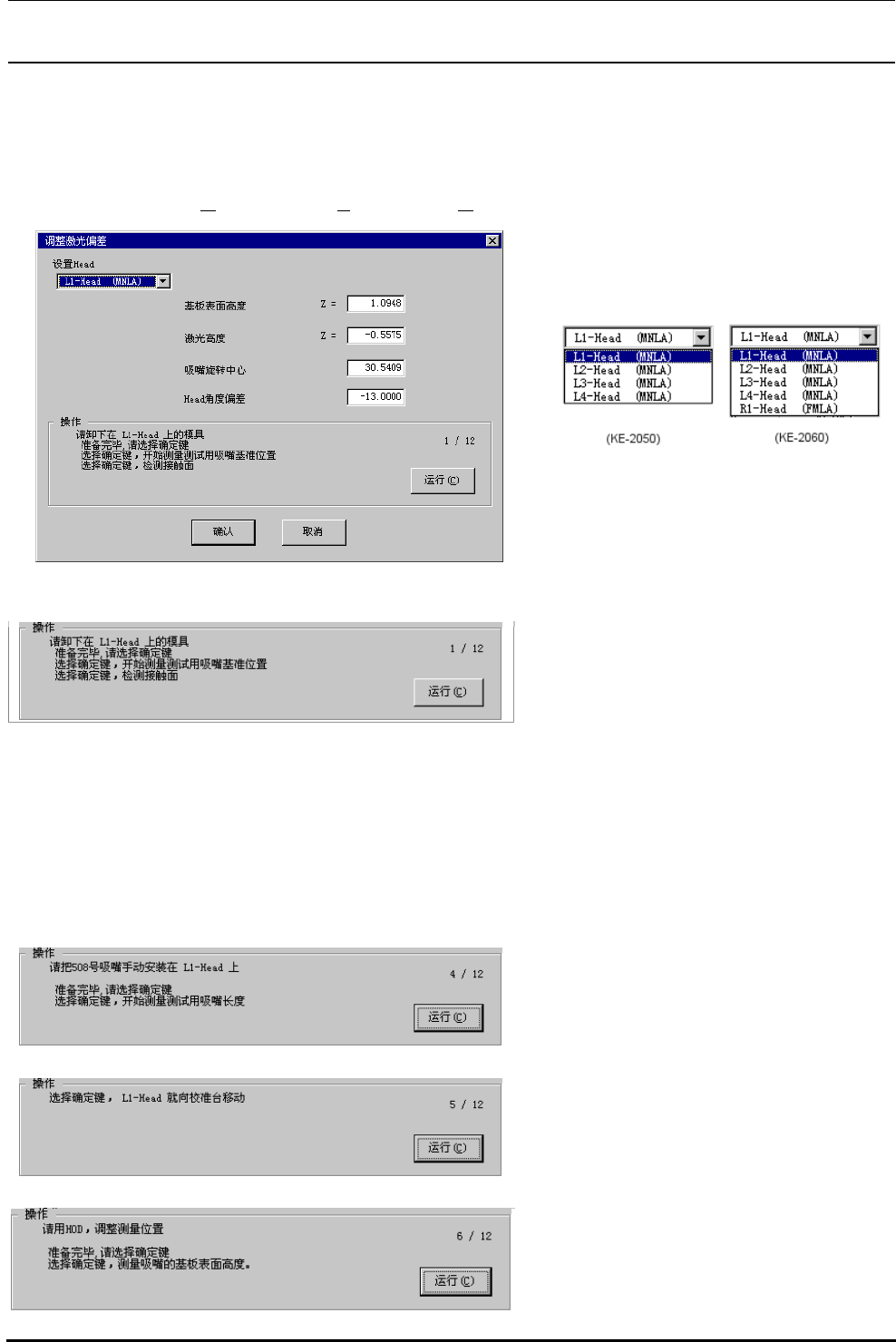 Rev.2.00 MS 参数 4-4 4-1-1-3. 操作 选择了 [ 偏差设定 (O )][ 激光偏差 ト(L )][ 激光偏差 (O )...] 之后,显示出下面的激光偏差设定画面 。 < 操作 ・1/1 2> 请同时按 Alt 键和 ↓ 键 。 显示出下面的一 览 。 请选择设定对象贴装头。 ※ 不影响机器设置的 “ 使用装置 ” 的设 定 。 没有检查 ( 设定为不使用的 ) 装置也可 以选择 。 < 操作 ・1/1 2 续 …