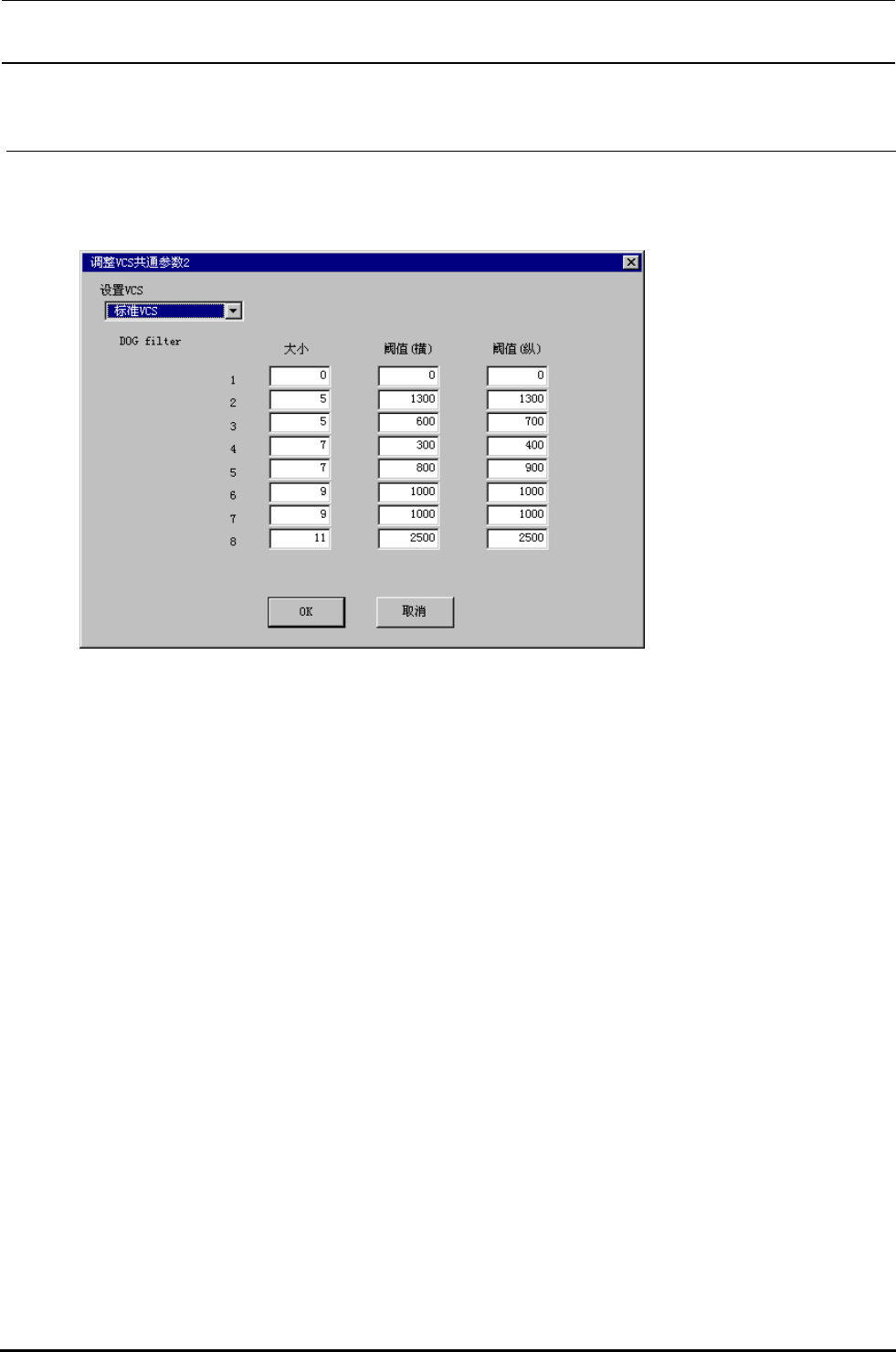 )][VCS偏差(V)][VCS贴装综合偏差(P)...]之后,显示出下面的调整VCS贴片综合
