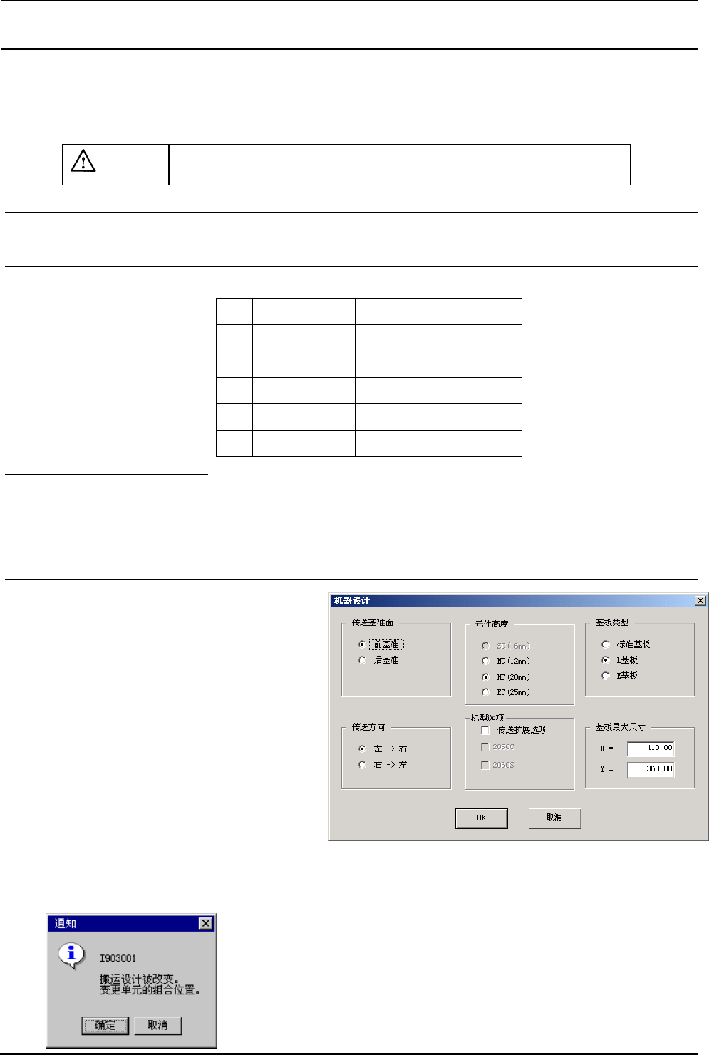 选择了确认之后,传送规格变更时,装置组装位置变更的通