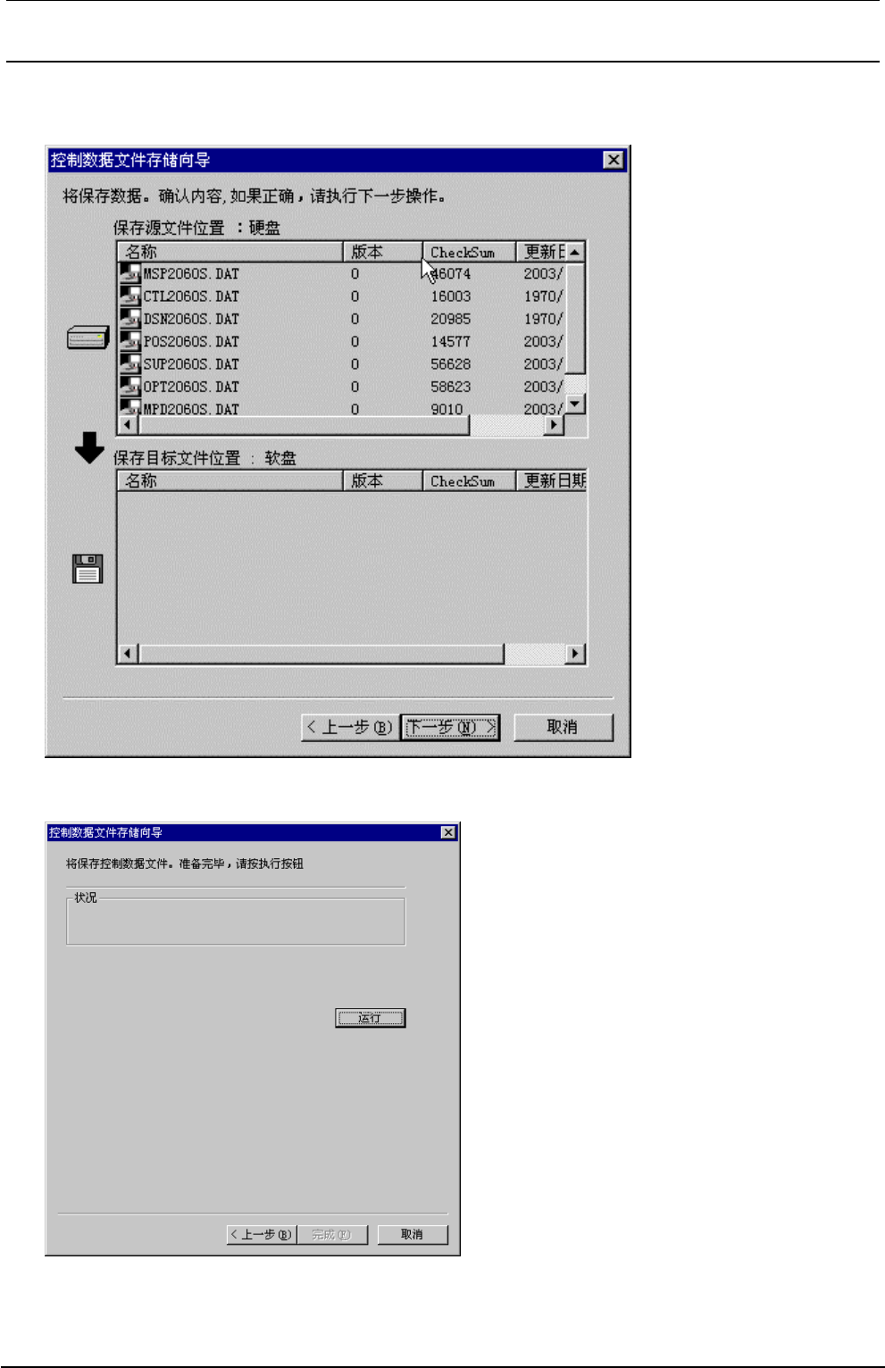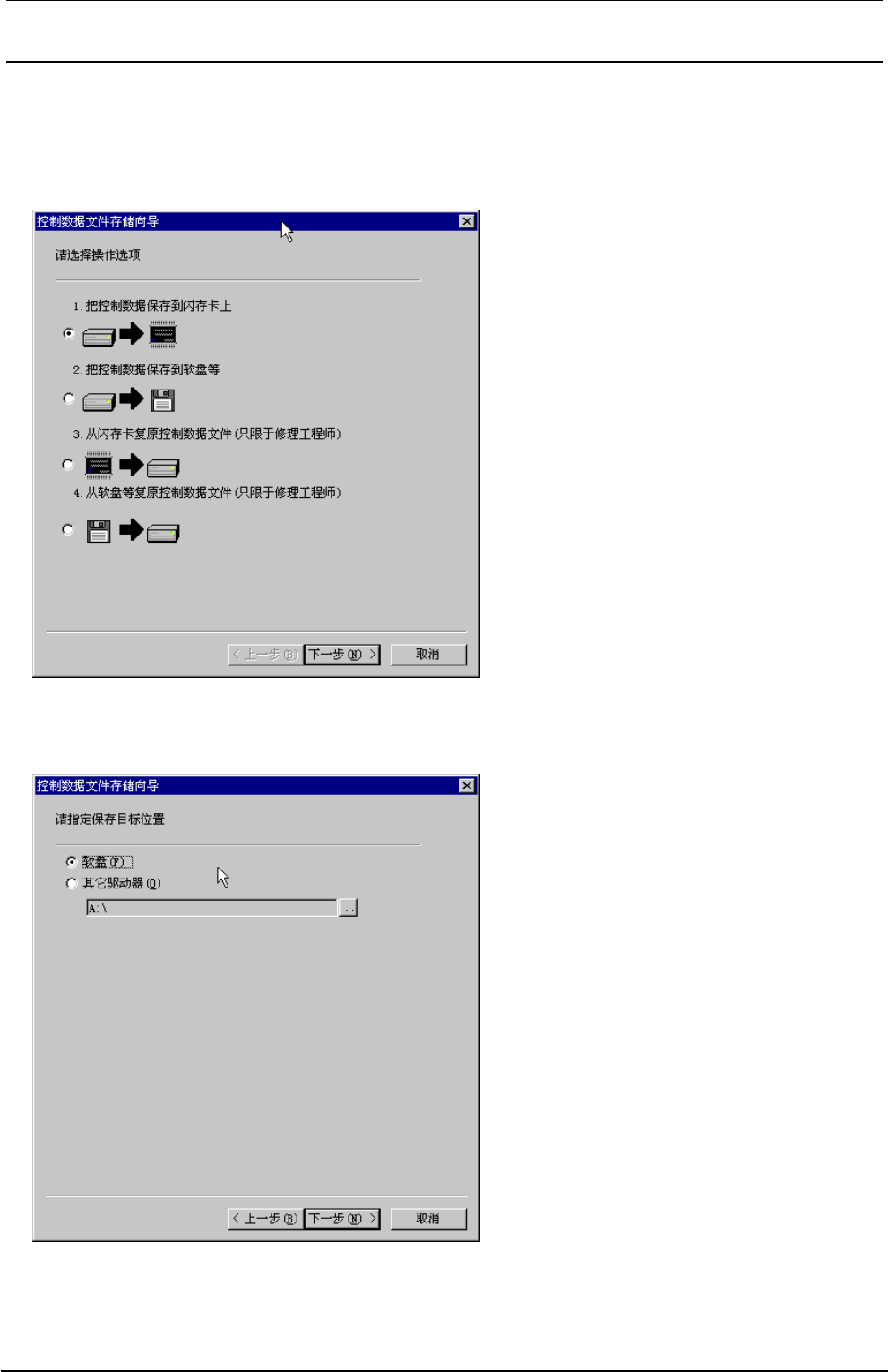 ② 控制数据文件存储想到被显示出来。这时、请选择「2.把控制数据保存到软盘等。」、然后选择下一步