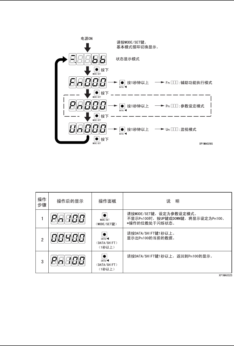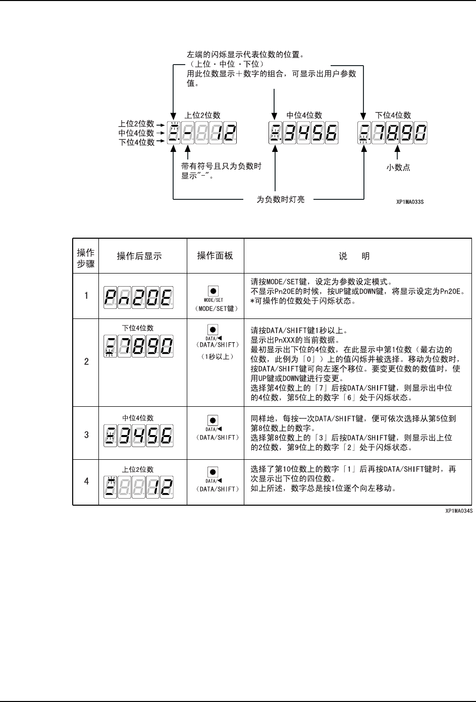 MEC-XPF-5.2S 7. 调整 XPF 机械手册 149 2. 操作面板的显示位数为 5 位数。常数为 6 位数以上时显示如下。 3. 以参数 「Pn20E = 1234567 890」为例说明显示的 方法。 VVjge7dV VVjge7dV Downloaded at 2011/05/26 09:05 JST by 3JUZ5089 DL#VVjge7dV