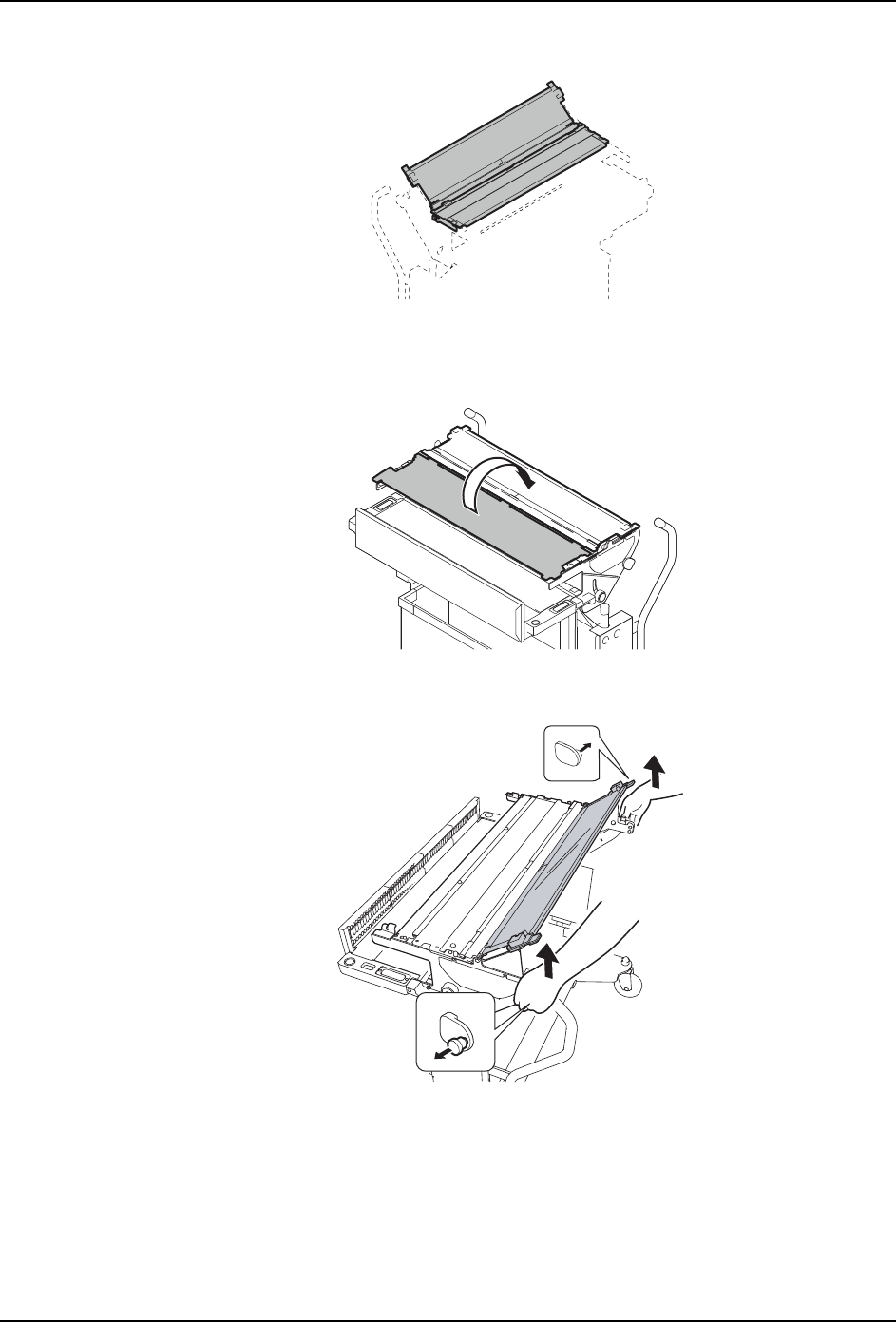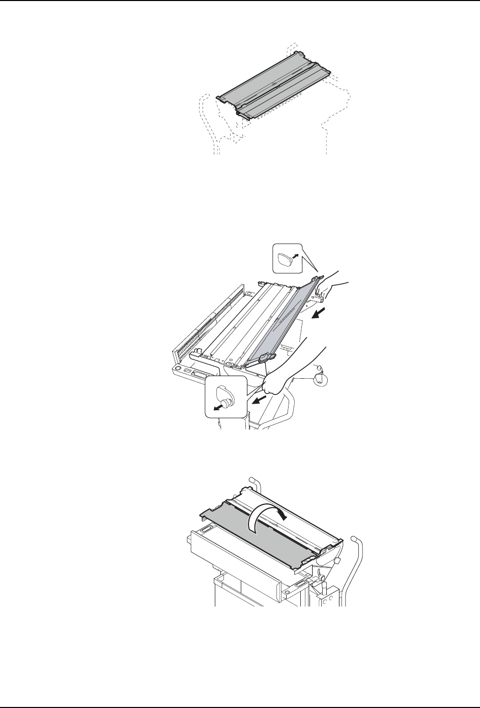 1. 在拉出盖板台左右侧旋钮的状态下,请用双手同时将盖板台向上方拉出。