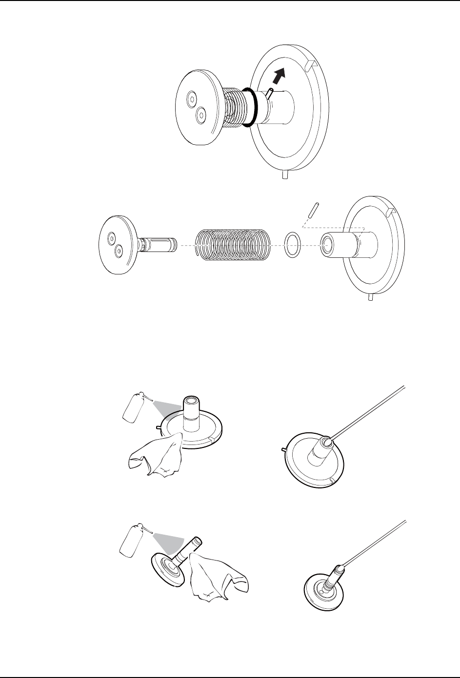 1. 请喷射脱脂冲洗剂到吸嘴头上 , 用回丝擦去污垢和旧的润滑剂。对于孔的内部请使用棉