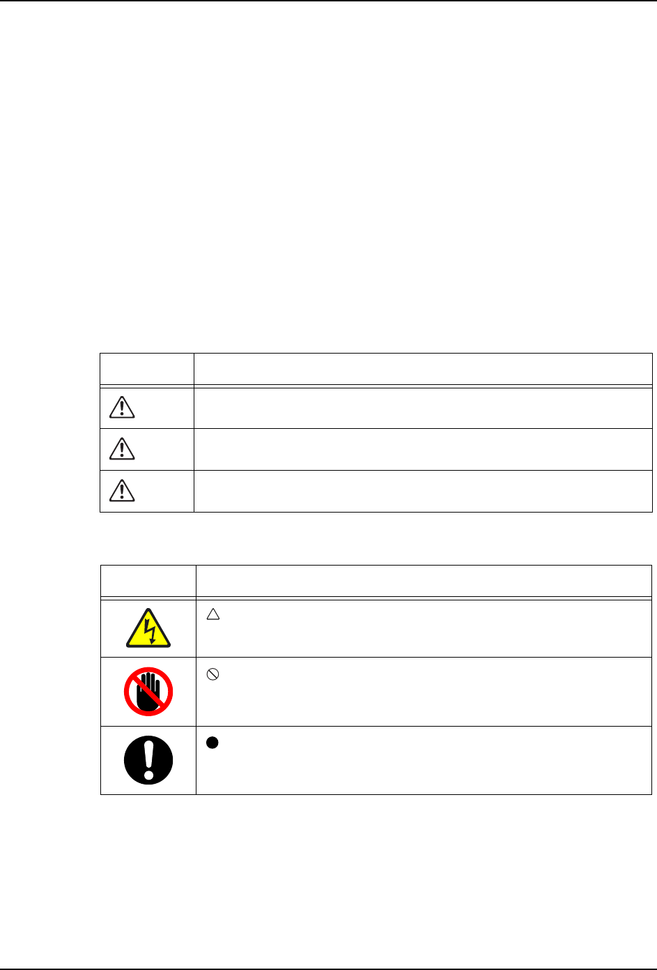 本书及其产品上的警告标识的注意说明使用了危险度的定义 (危险度的大小)以及图标记