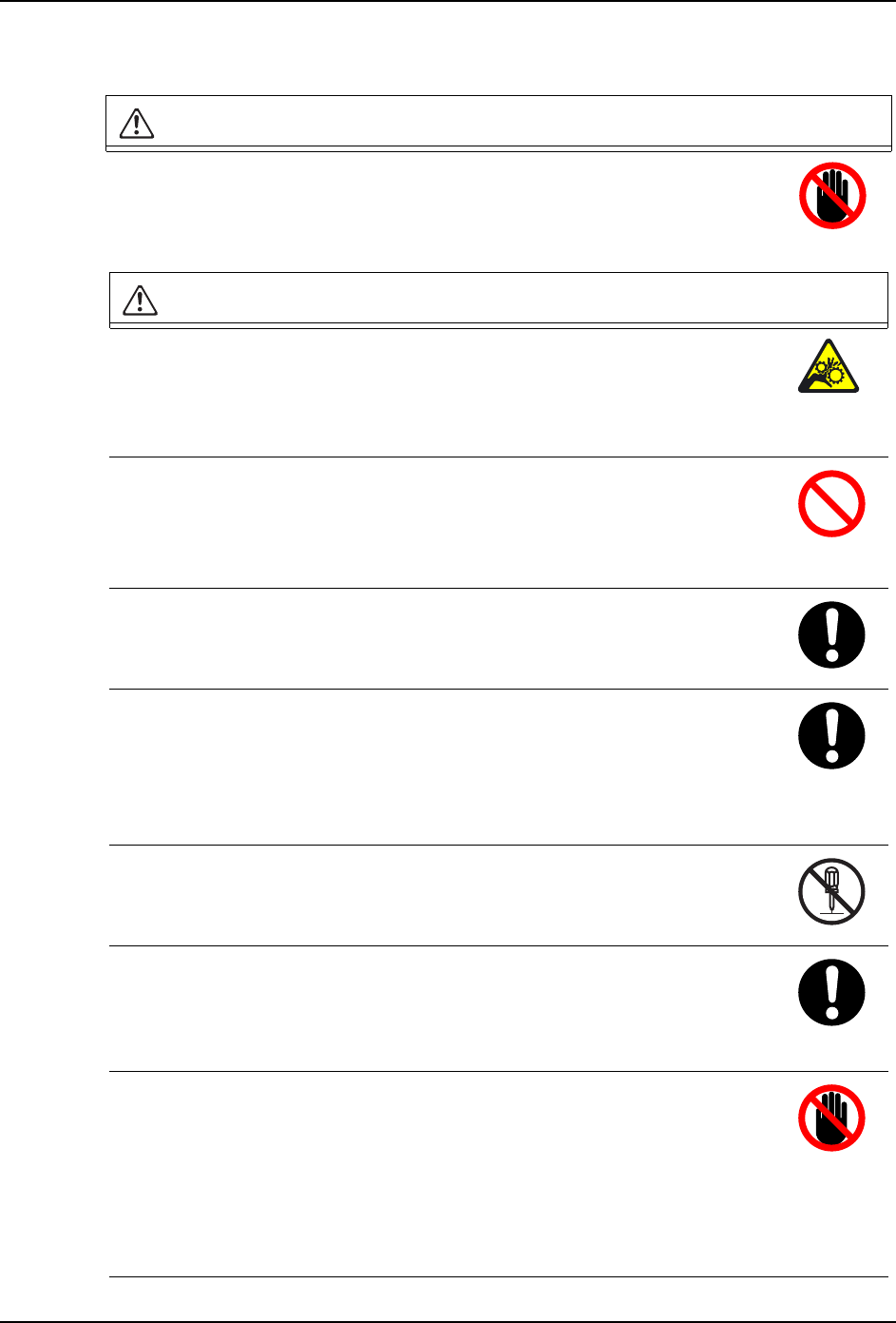 在此 [ 安全指南 ] 中,记载着用户在操作和维修保养操作时应该遵守的注意事项。另外,