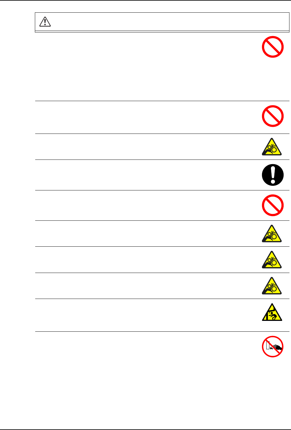 ·手或身体有可能被机器卷入而受伤。