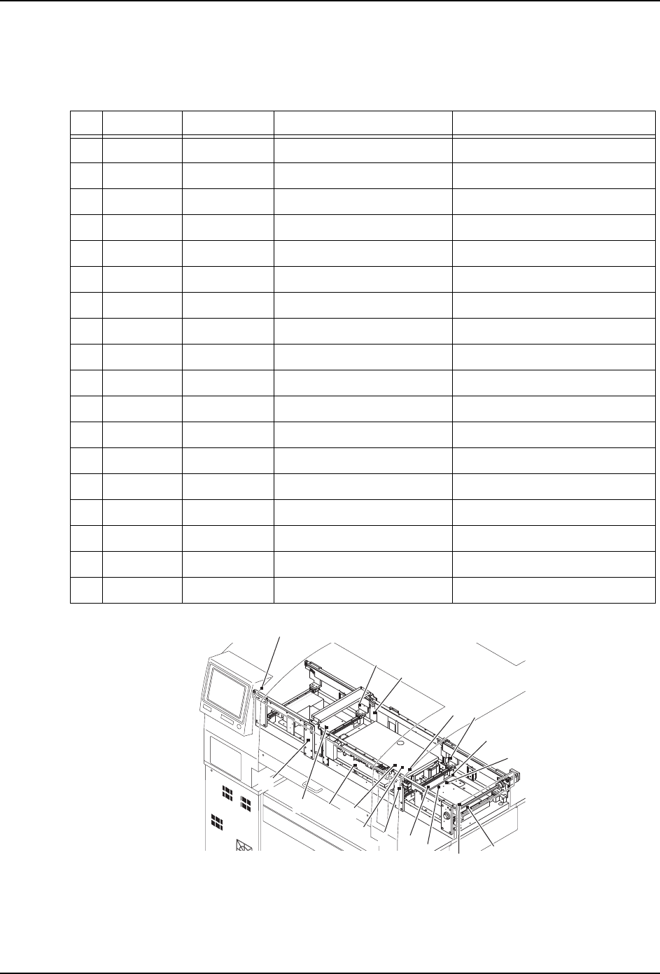 MEC-XPF-5.2S 8. 传感器位置 XPF 机械手册 153 8. 传感器位置 8.1 搬运轨道周围部分 I/O 号码 电路图号码 画面记载 内容 1 RX01A 11LS-11 Z0HeightChk 确认 Z0 高度 2 RX010 T1LS-6 MainPanelStpOnCh k 确认主平台有制动器 3 RX011 T1-LS-7 MainPanelStpOffChk 确认主平台制动 器解除 4 RX012 T1LS-1…
