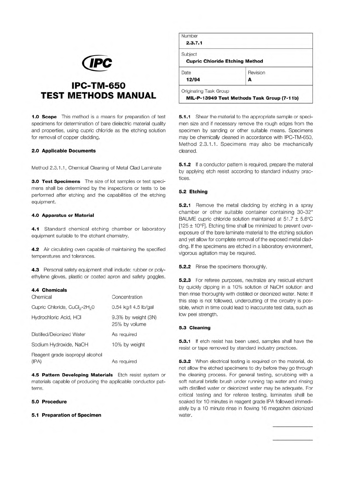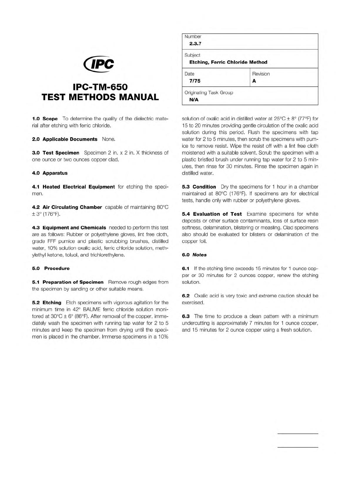 Material in this Test Methods Manual was voluntarily established by Technical Committees of the IPC. This material is advisory only
