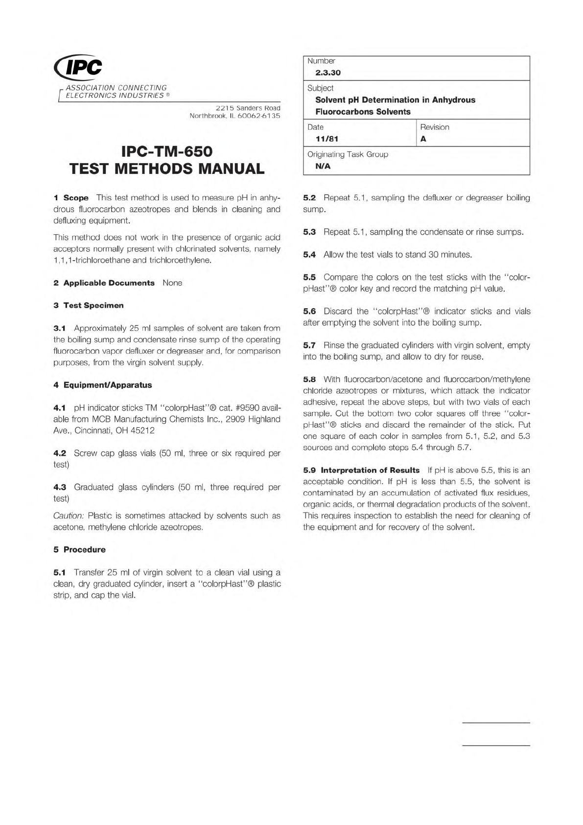 Material in this T est M ethods Manual was voluntarily establis hed by T echni cal Committees of IPC. Thi s mat erial is a dvisory only and its use or adaptation is entirely voluntary . IPC disclaims all lia bility of an…
