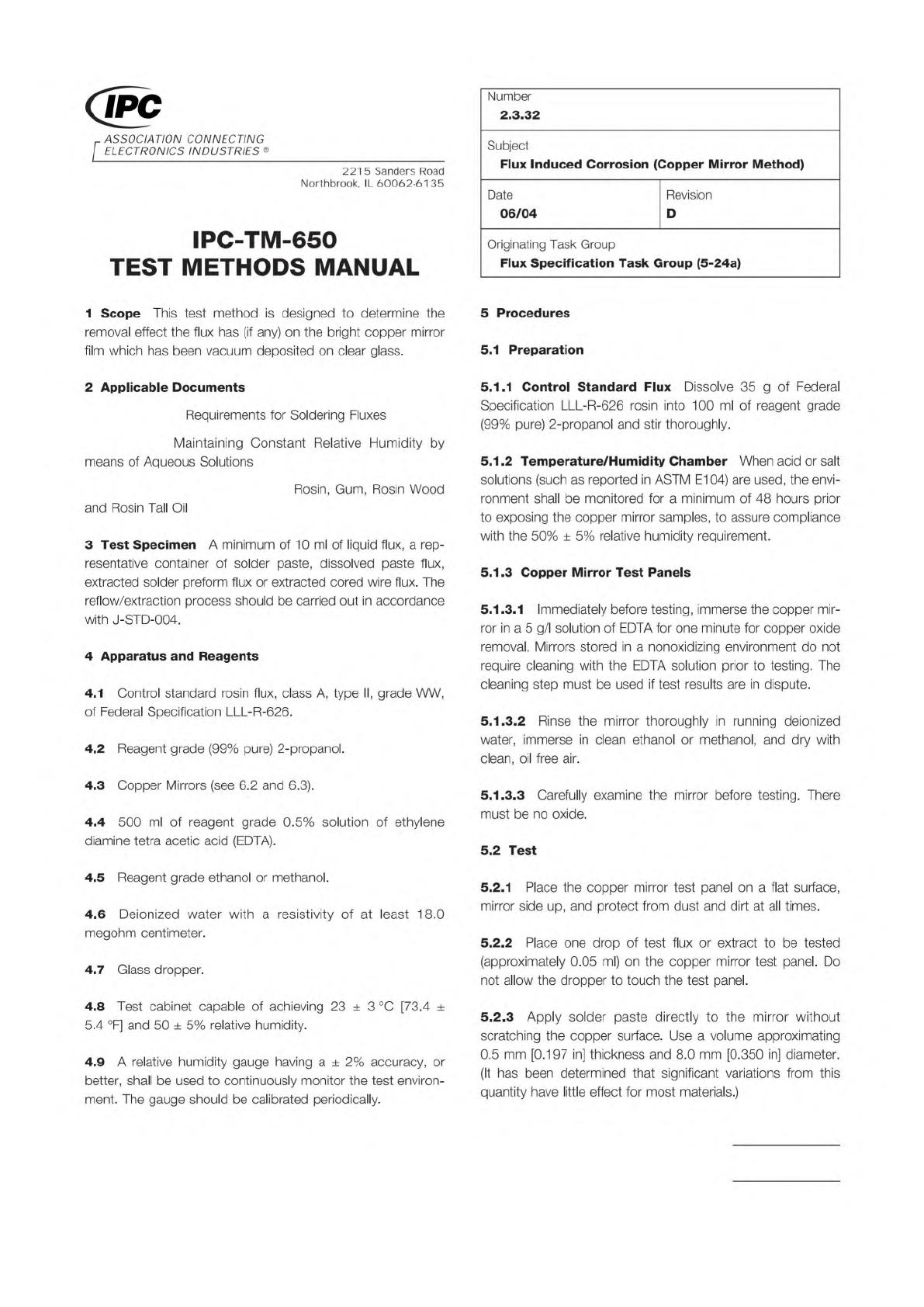 Material in this Test Methods Manual was voluntarily established by Technical Committees of IPC. This material is advisory only