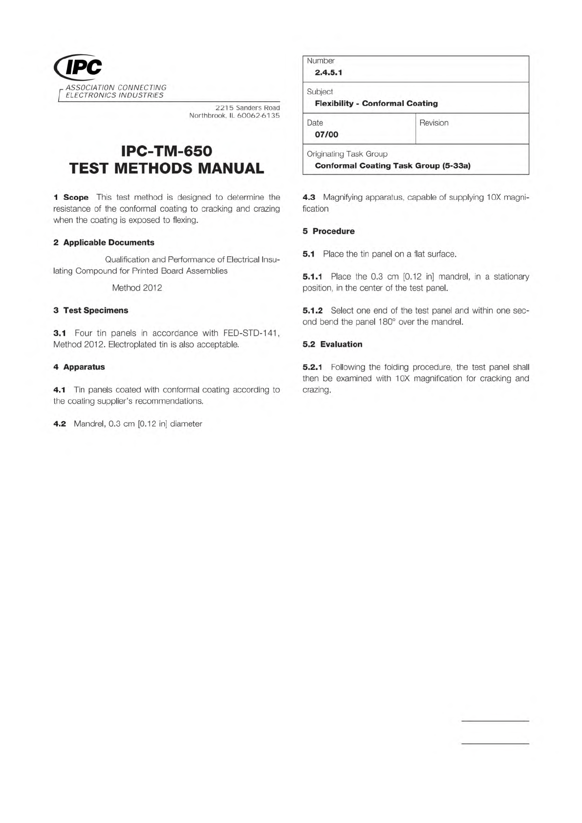 Material in this Test Methods Manual was voluntarily established by Technical Committees of IPC. This material is advisory only