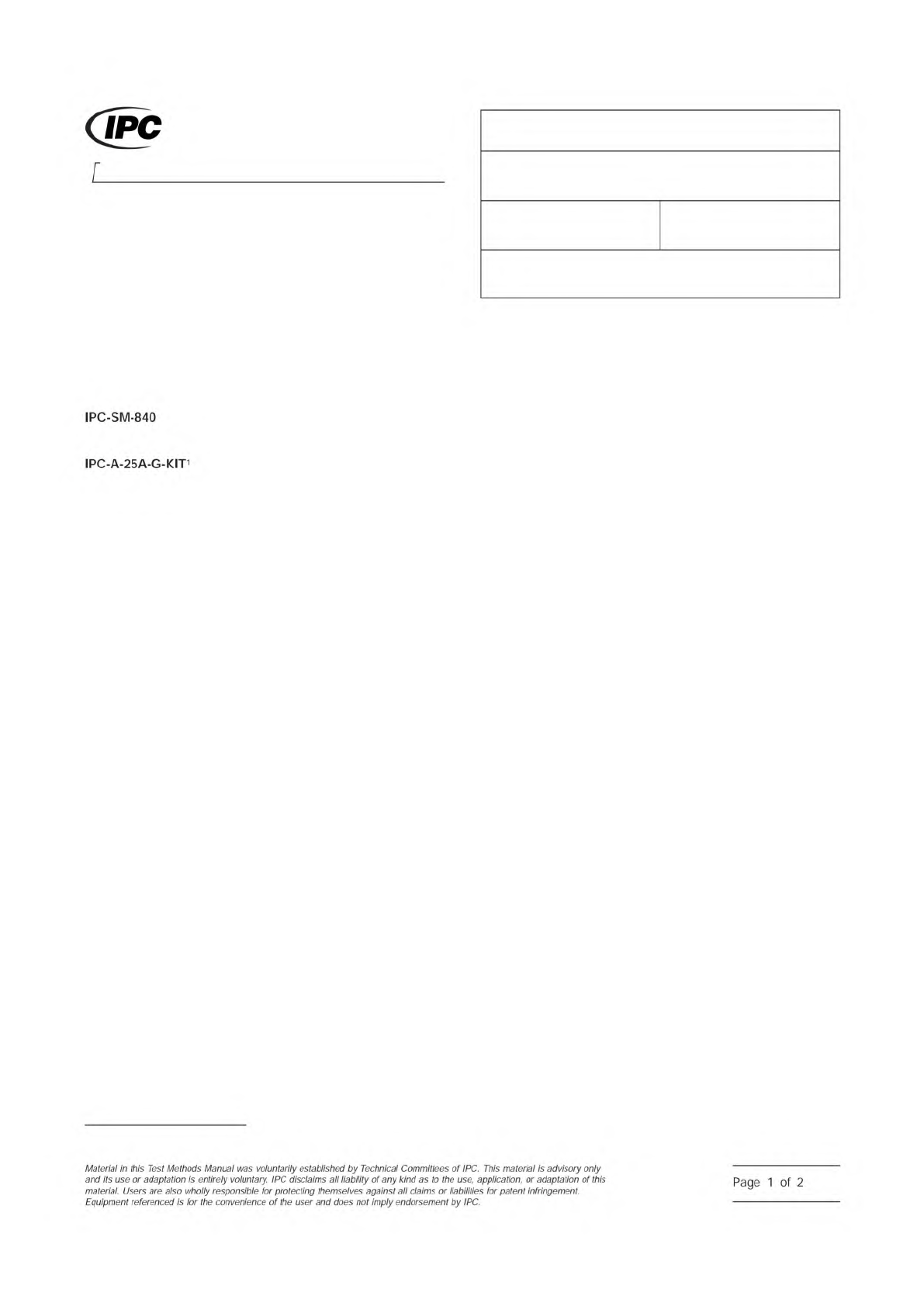 Material in this Test Methods Manual was voluntarily established by Technical Committees of the IPC. This material is advisory only