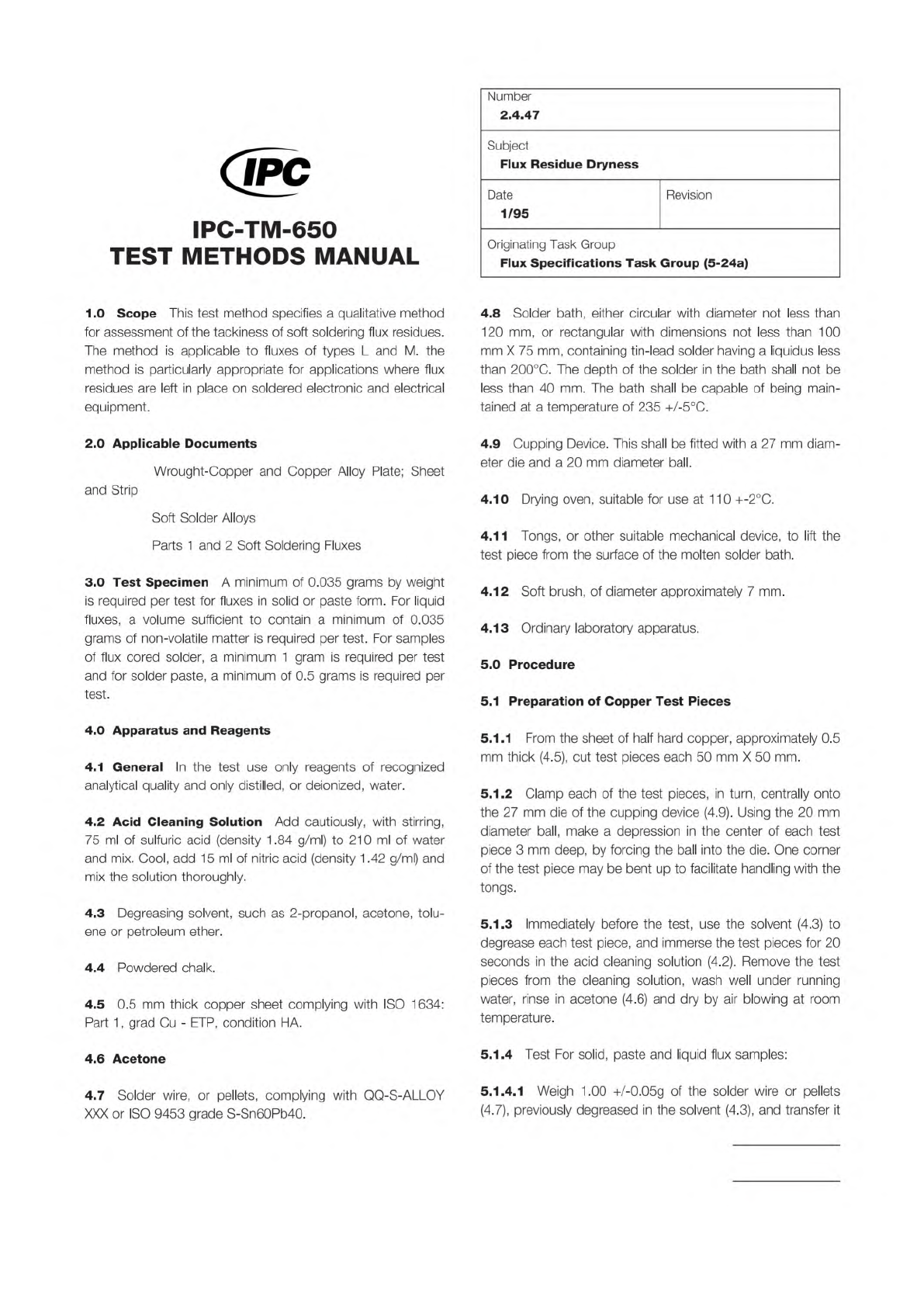 ISO 1634 ISO 9453 ISO 9455 The Institute for Int erconnecting and Packaging E lectronic Circuits 2215 S anders Road • Northbrook, IL 60062-6135 Material in this T est M ethods Manual was voluntarily establis hed by T ech…