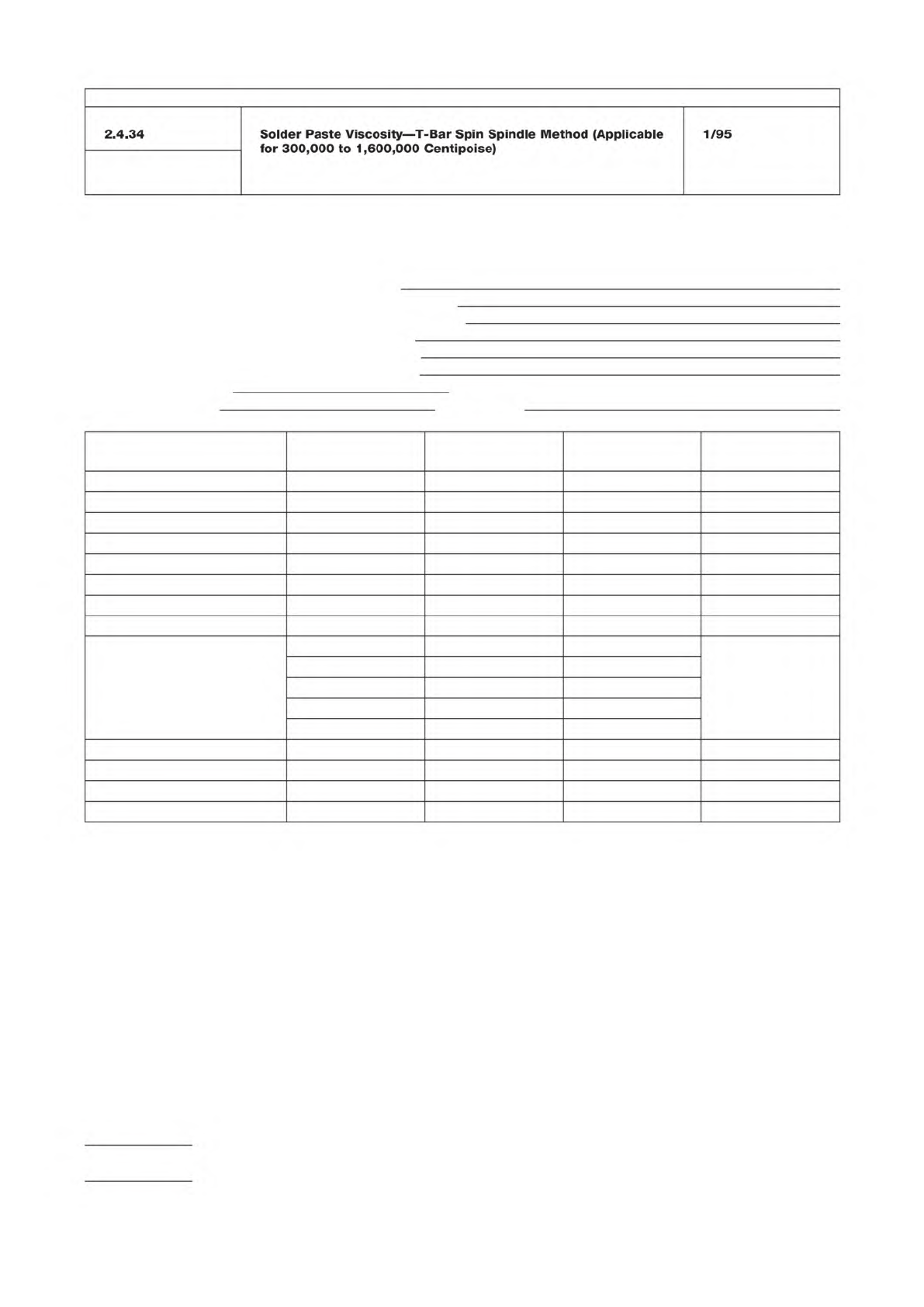 T able 1 T est Report o n Solder P aste Enter ap propriate information in top portion of report and com plete report by entering the test results or checkm arks in the appropriate spaces. Inspection Pu rpos e: QPL I.D. N…