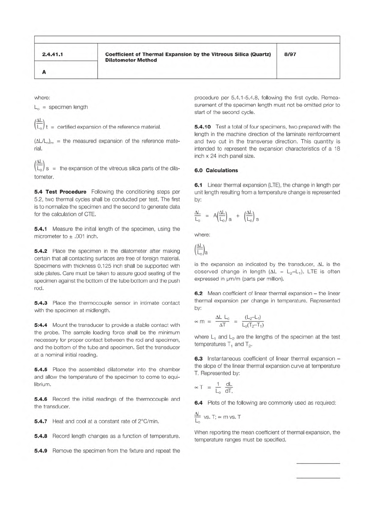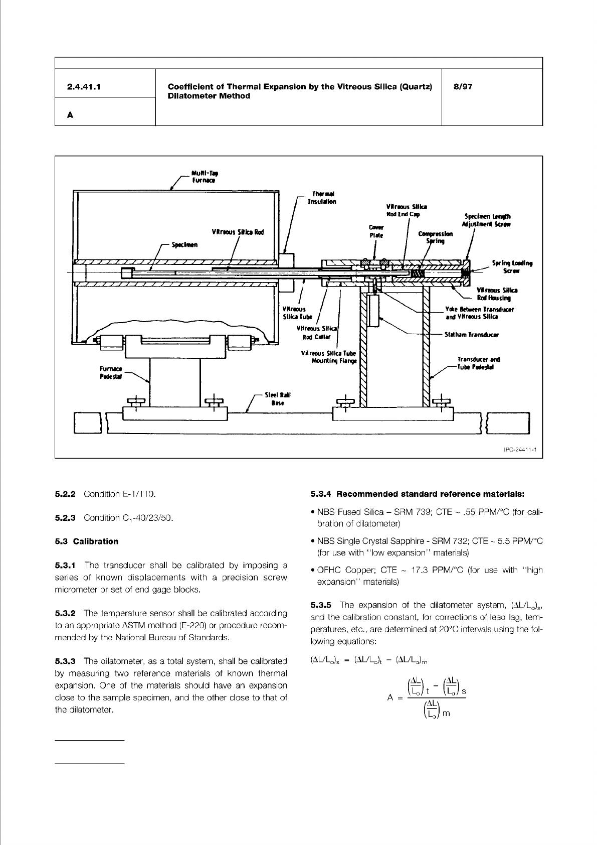 / IPC-TM-650 Number Subject Date Revision Page 3 of 3 2.4.41.1 Coefficient of Thermal Expansion by the Vitreous Silica (Quartz) Dilatometer Method 8/97 A where: Lo 二 specimen length (l-o) t = certified expansion of the r…