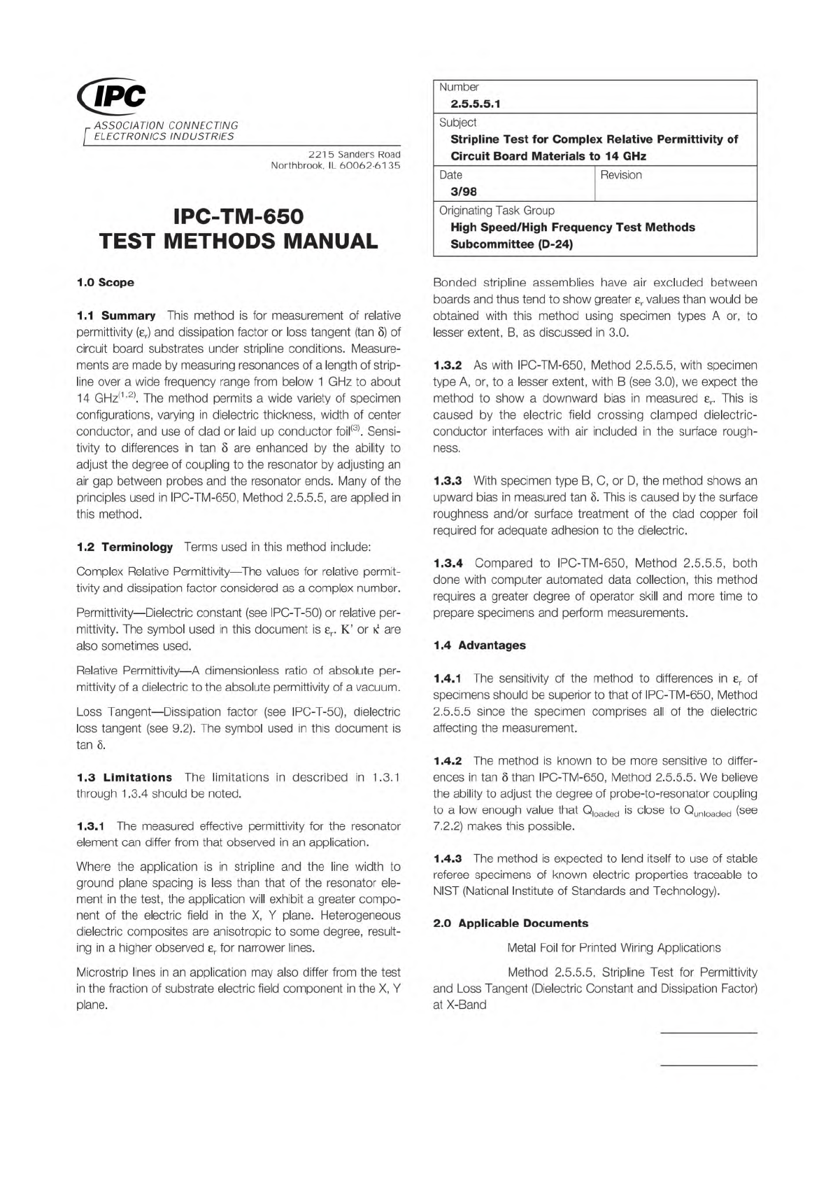 Material in this Test Methods Manual was voluntarily established by Technical Committees of the IPC. This material is advisory only