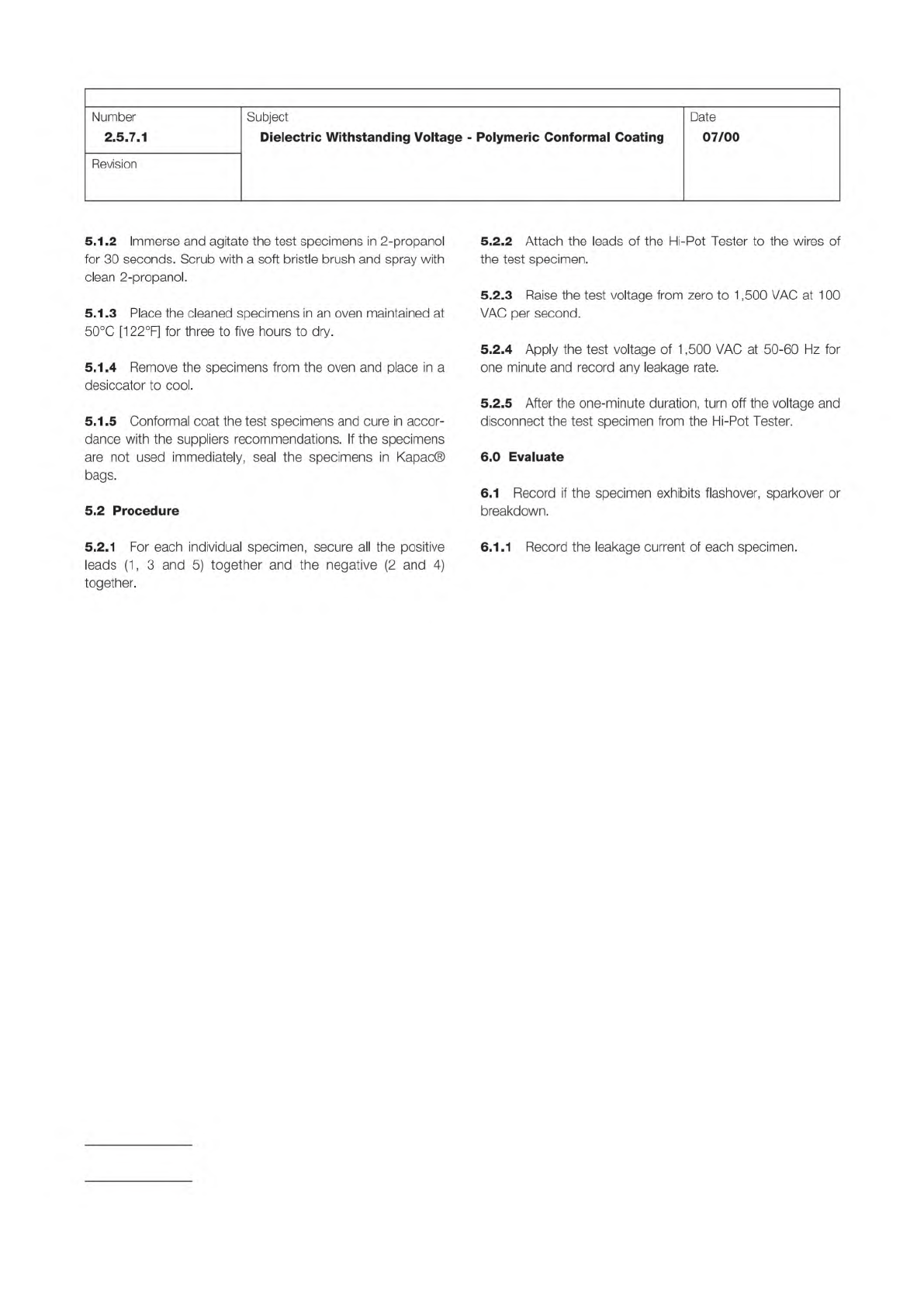 1 Scope The d ielec tri c withstanding voltage test (Hipot te st) consists of th e application of a voltage high e r than the oper- ating voltage for a specific time across the thickness of the test spe cim e n’s dielect…