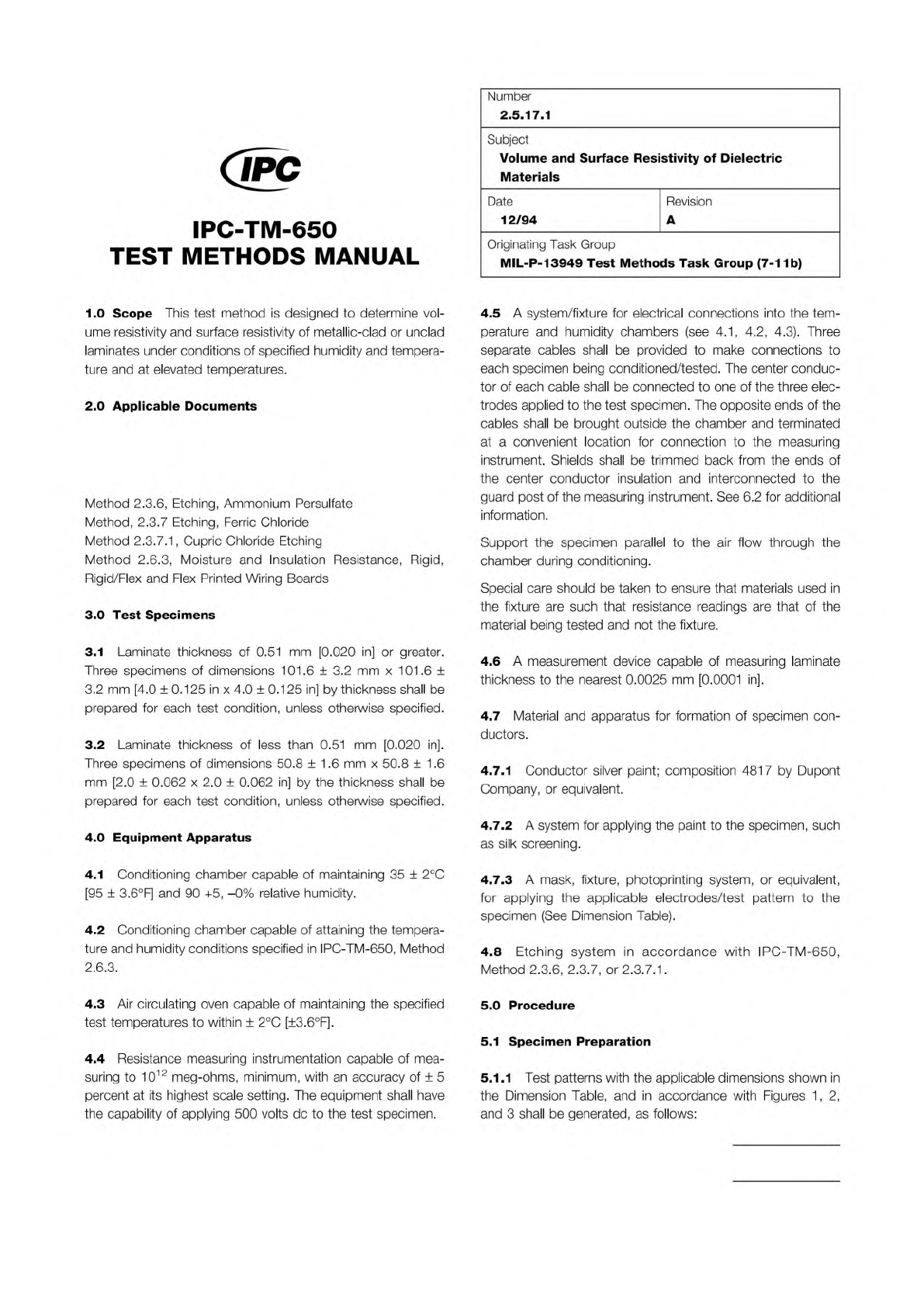 IPC-A-600 IPC-TM-650 T est M ethods Manual Material in this T est M ethods Manual was voluntarily establis hed by T echni cal Committees of the IP C. This material is advisory only and its use or adaptation is entirely v…