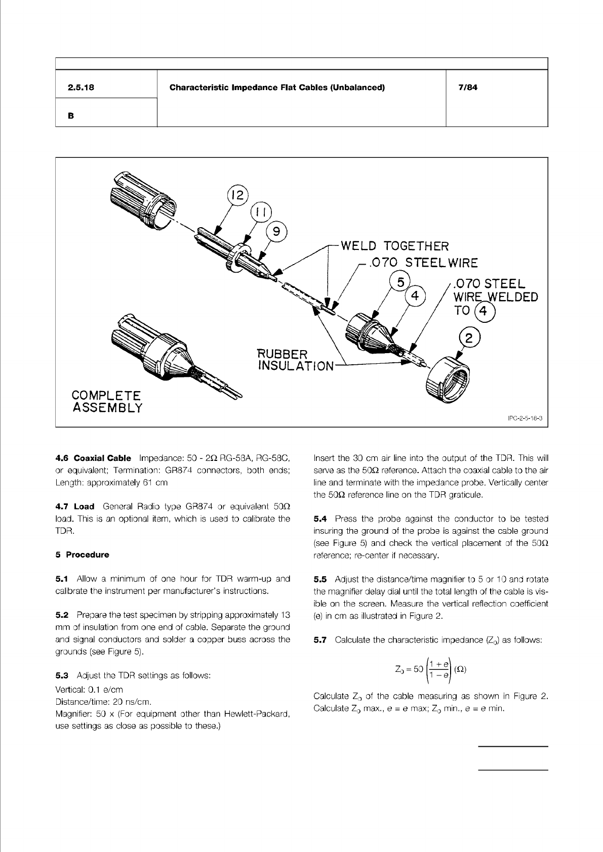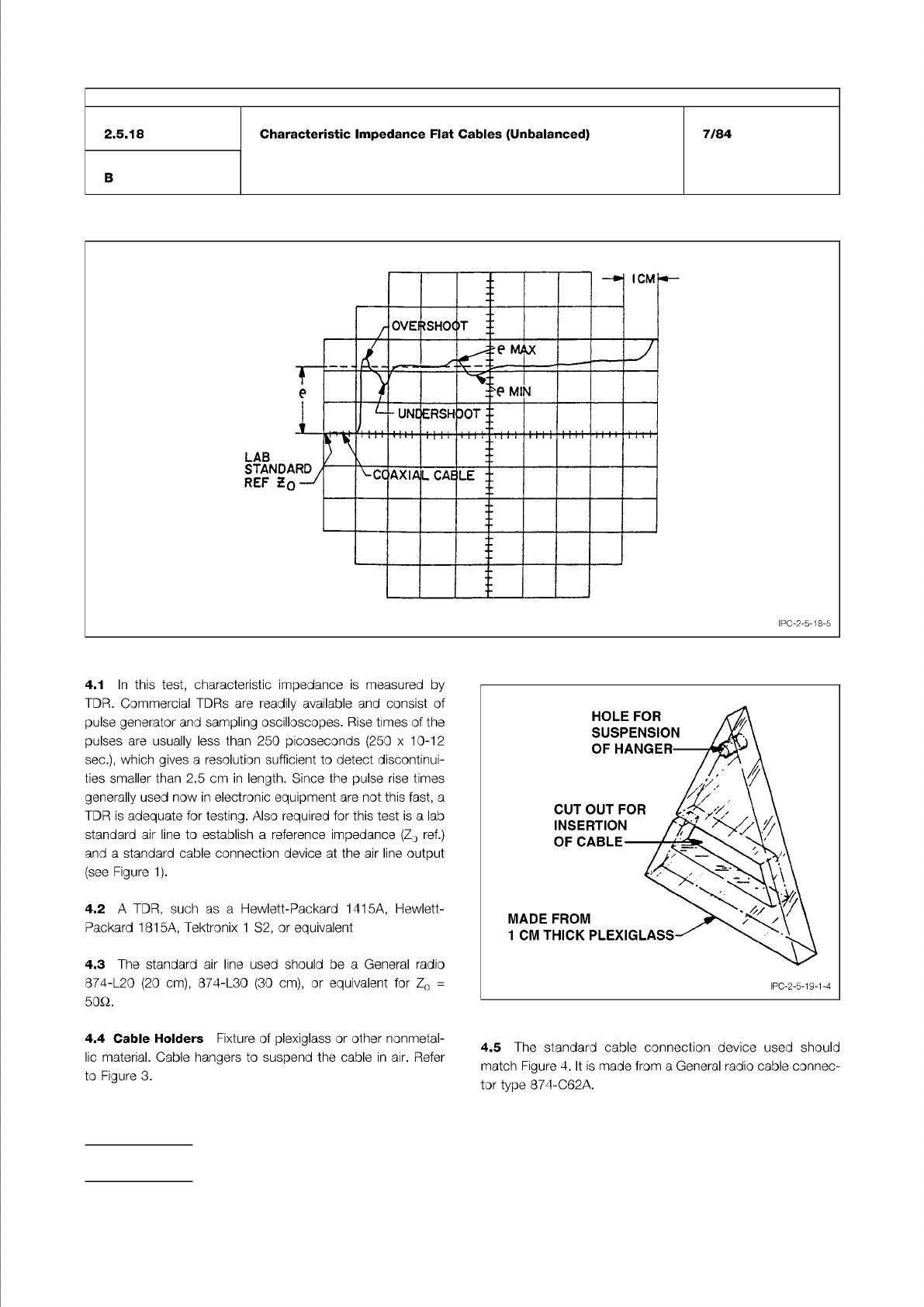 Figure 2 TDR Tr ace for a T ypi cal Cable Figure 3 Sample Cable Hanger IPC-TM-650 Number Subject Date Revision Page 2 of 4 2.5.18 Characteristic Impedance Flat Cables (Unbalanced) 7/84 B I PC-2-5-1 8-5 4.1 In this test, …