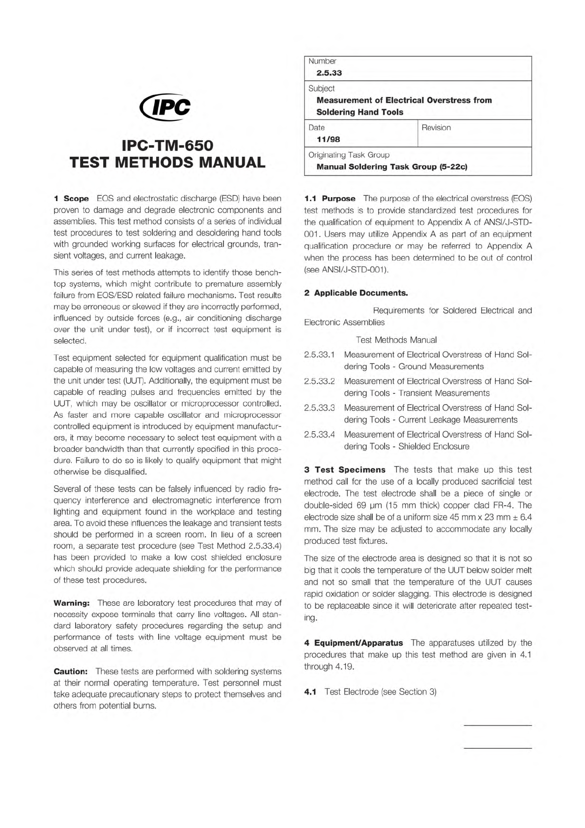 ANSI/J-STD-001 IPC-TM-650 The Institute for Int erconnecting and Packaging E lectronic Circuits 2215 Sanders Road • Northbrook, IL 60062 Material in this T est M ethods Manual was voluntarily establis hed by T echni cal …
