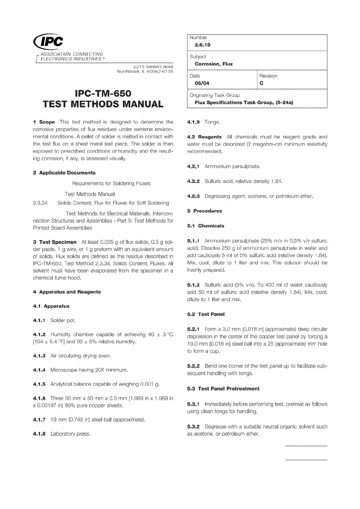 IPC J-S TD-004 IPC-TM-650 IEC 6 1 189-5 Material in this T est M ethods Manual was voluntarily establis hed by T echni cal Committees of IPC. Thi s mat erial is a dvisory only and its use or adaptation is entirely volunt…